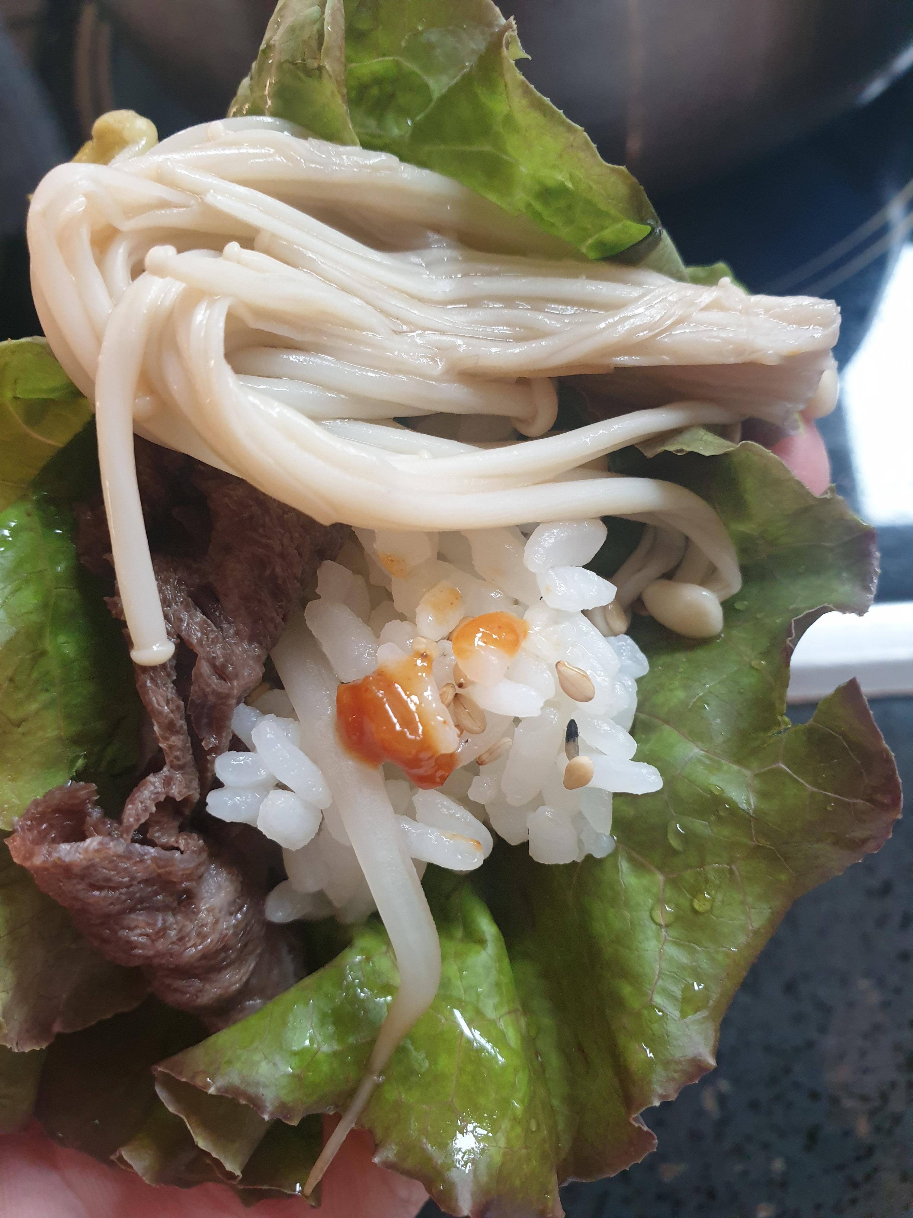 상추쌈밥이 맛있을까? 하고 한입 먹어봤는데