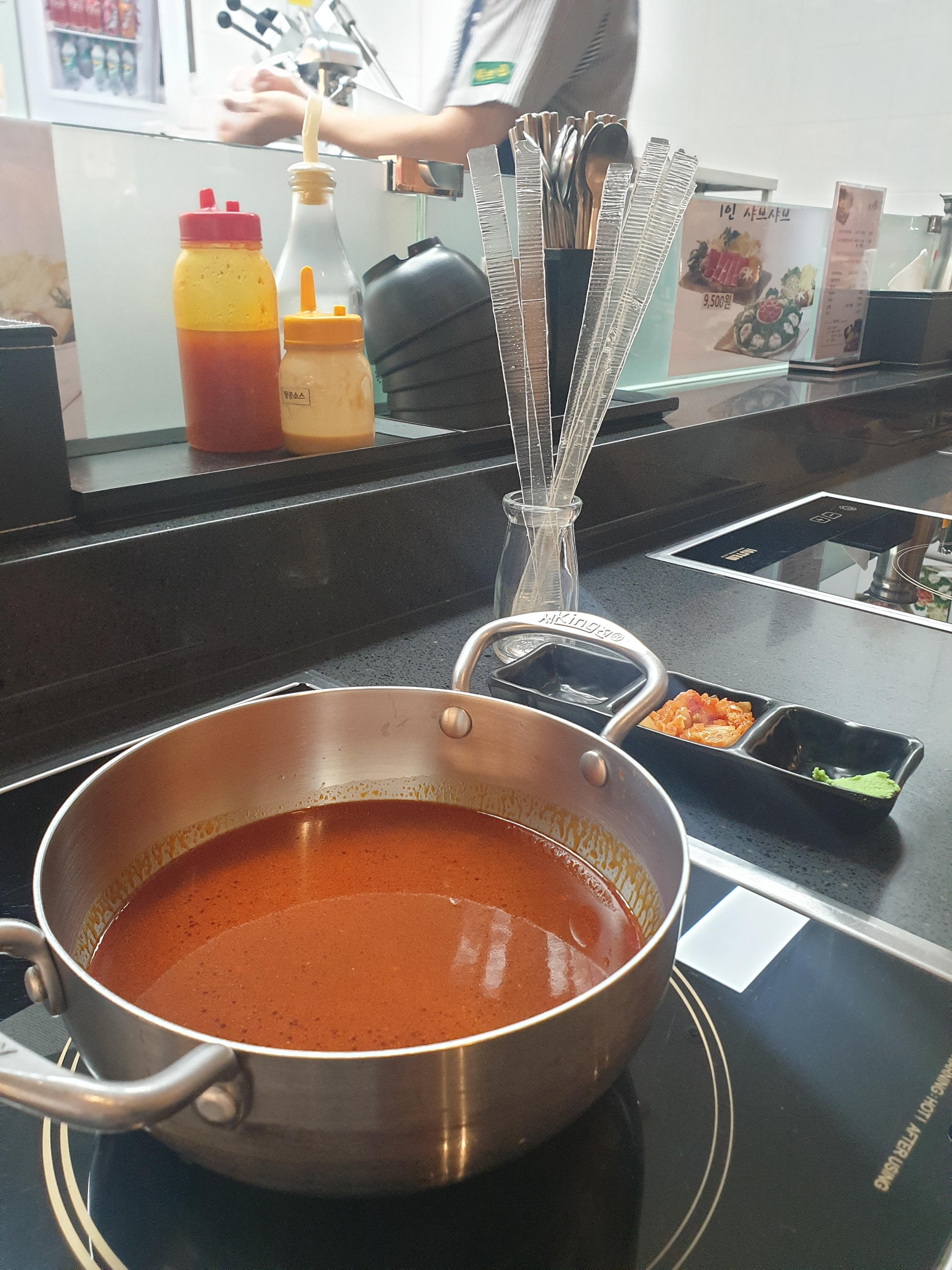 샤브샤브가 당겨서 자리에 앉았어요