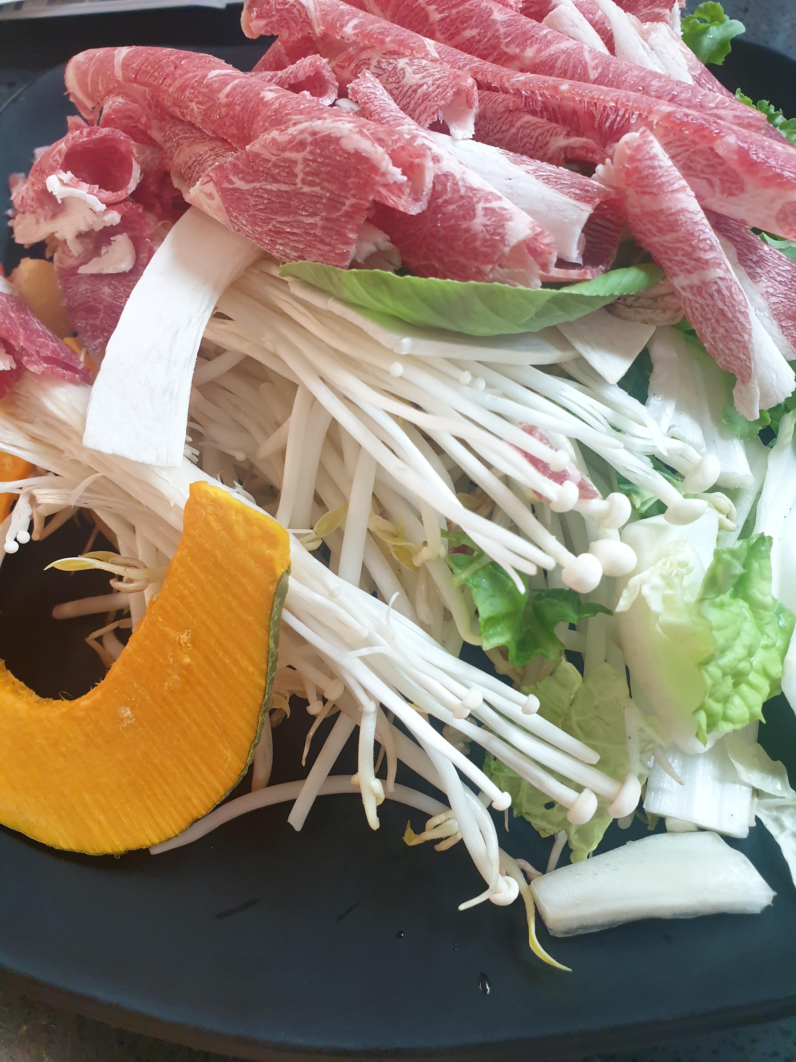 소고기 야채 샤브샤브가 있는데