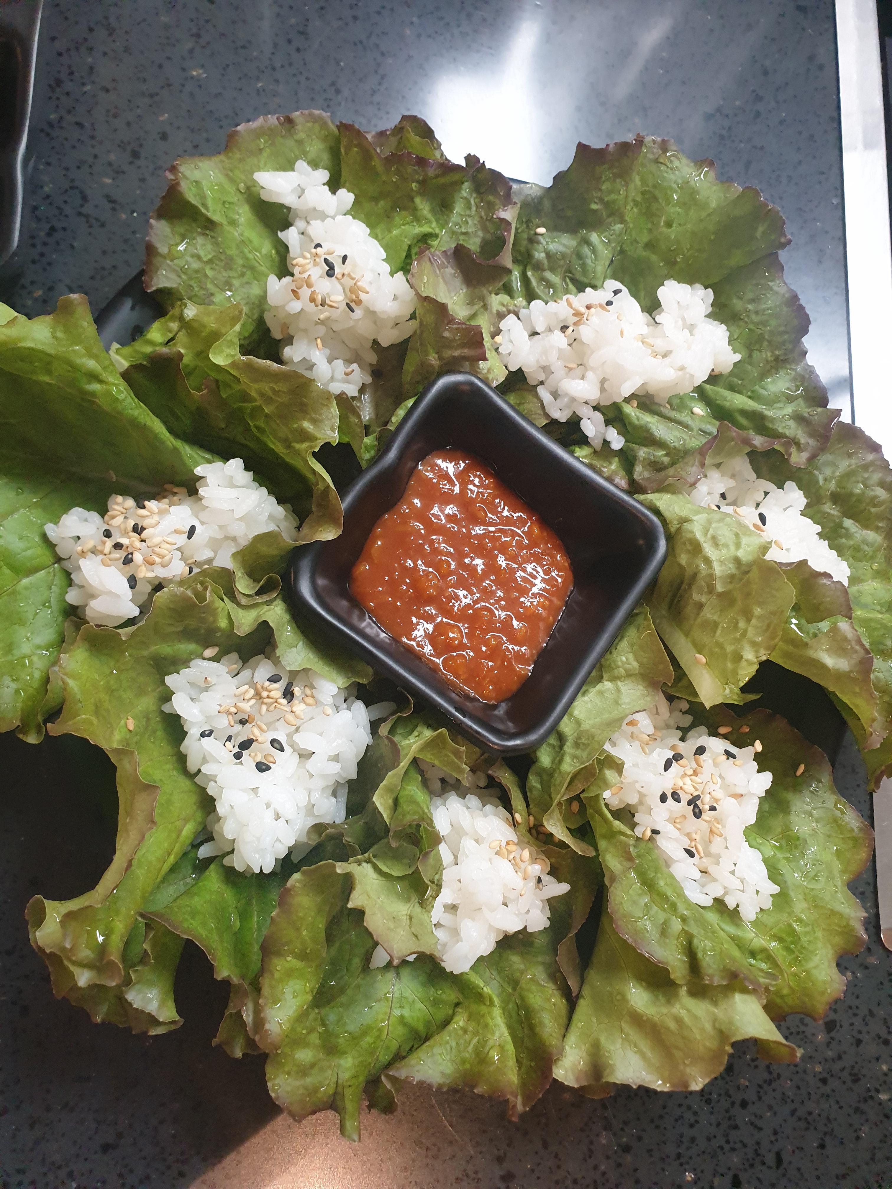 쌈밥을 싸서 먹어봐요