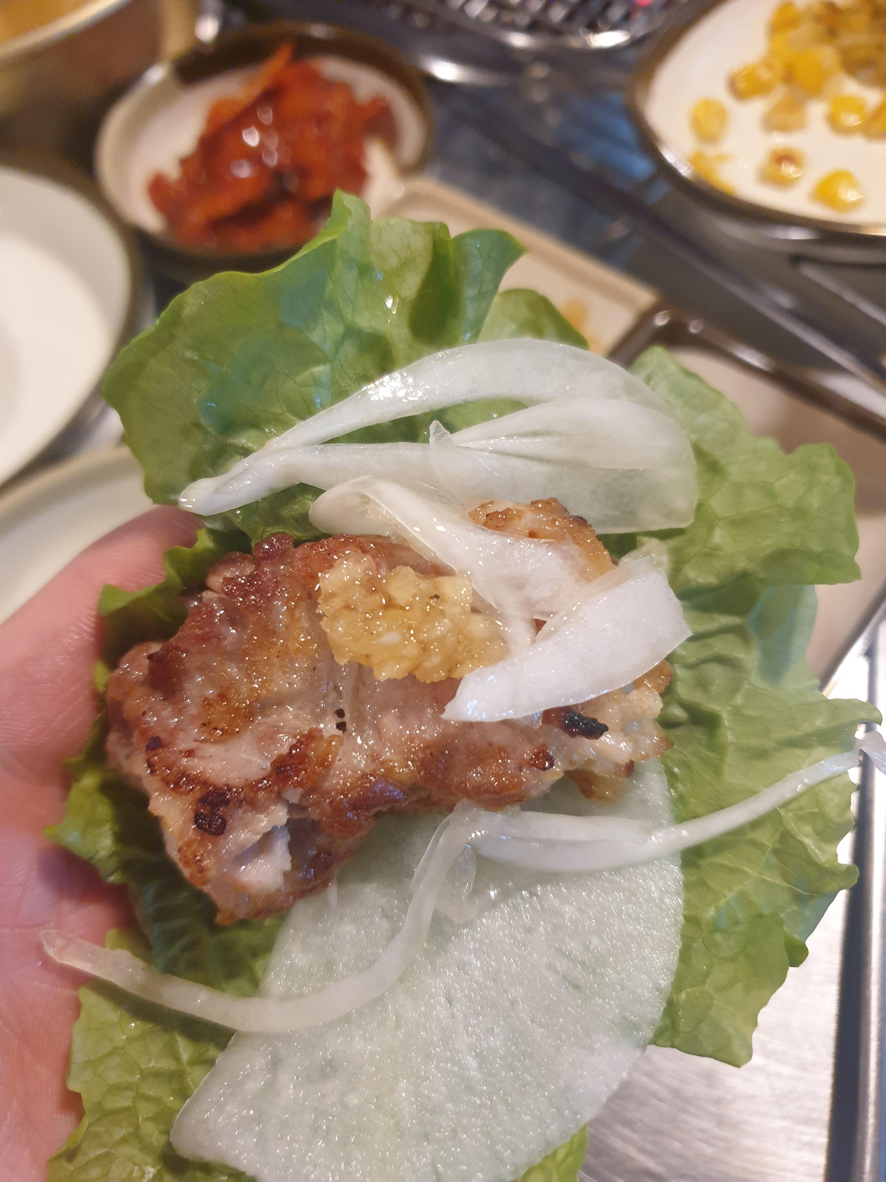 맛나게 잘 구워 쌈을 싸서 먹어봅니다