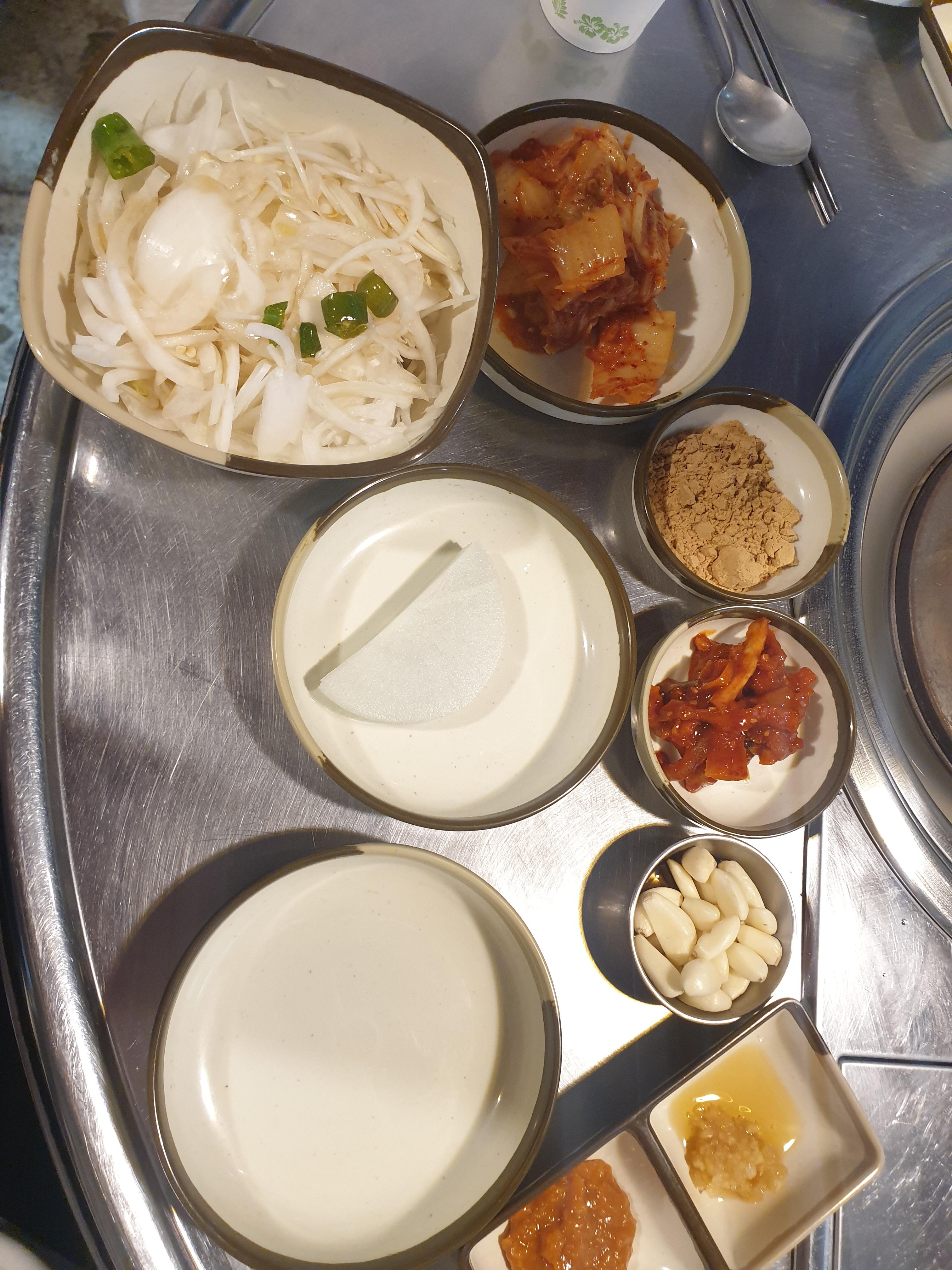 밑반찬이 깔리는데 와! 오랜만에 보는 콩가루ㅎㅎ