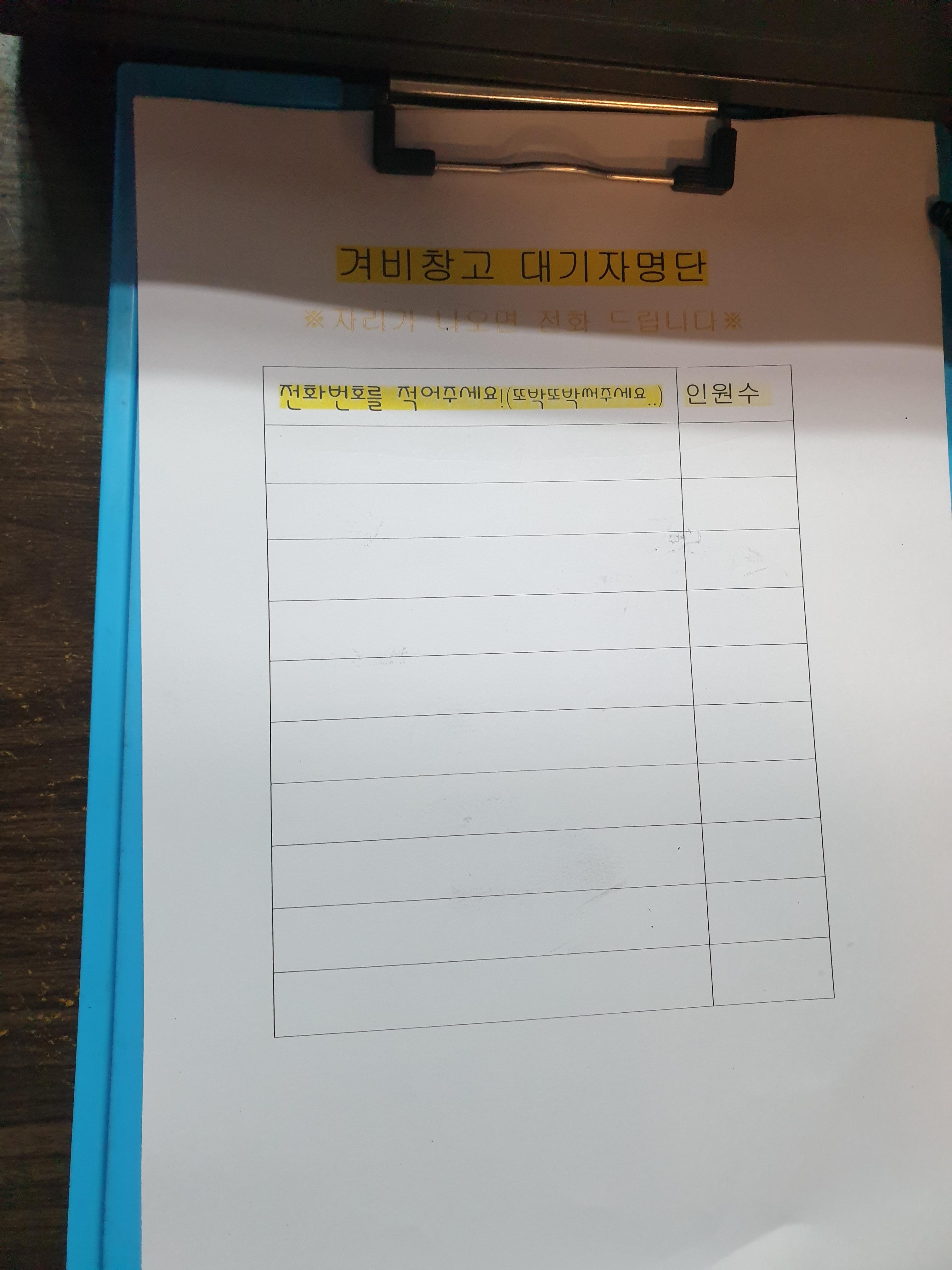 직원분이 대기자 명단을 작성해 달라고 하셔요