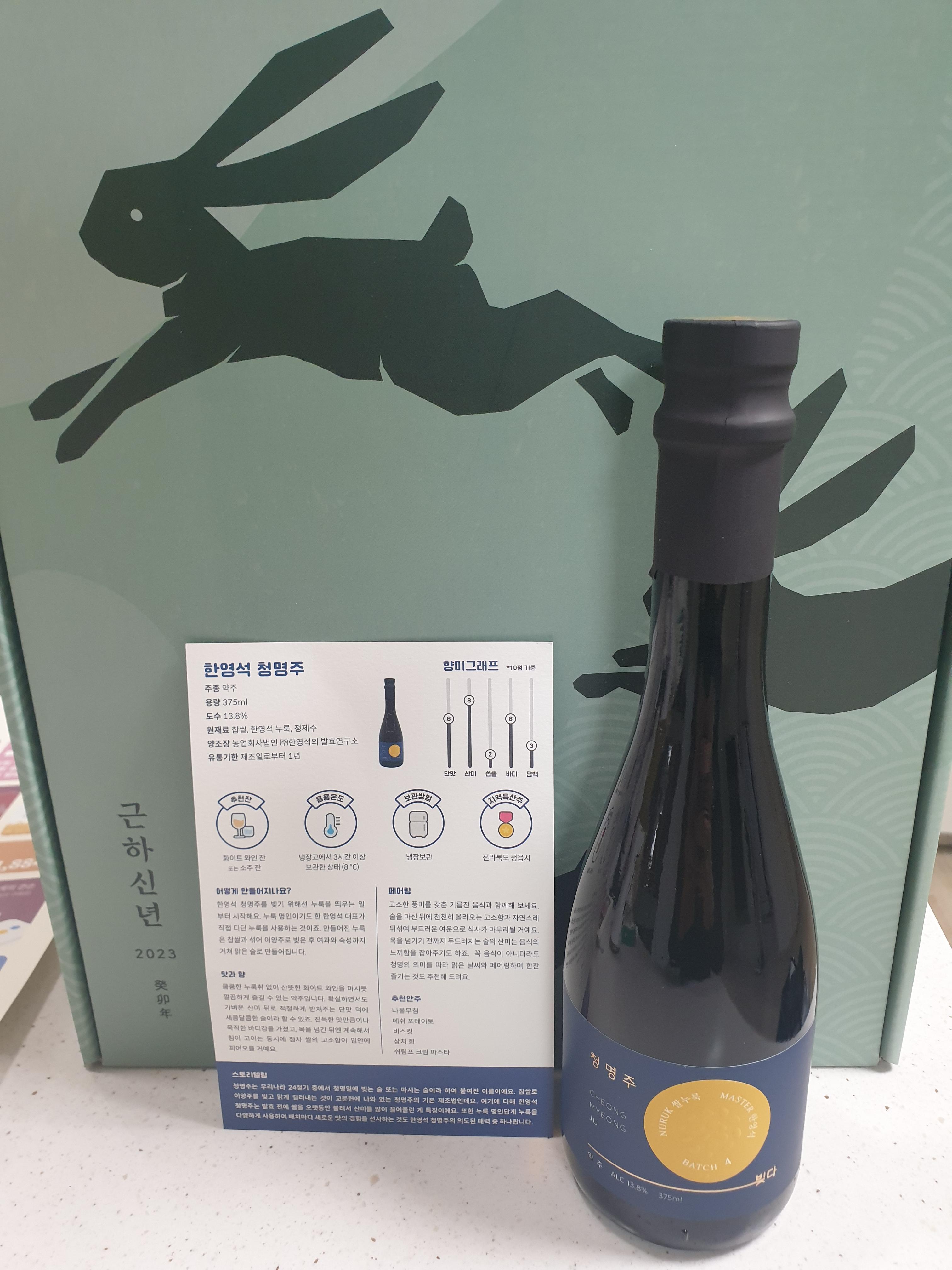 2. 한영석 청명주 - 375ml, 약주, 13.8%, 19,500원