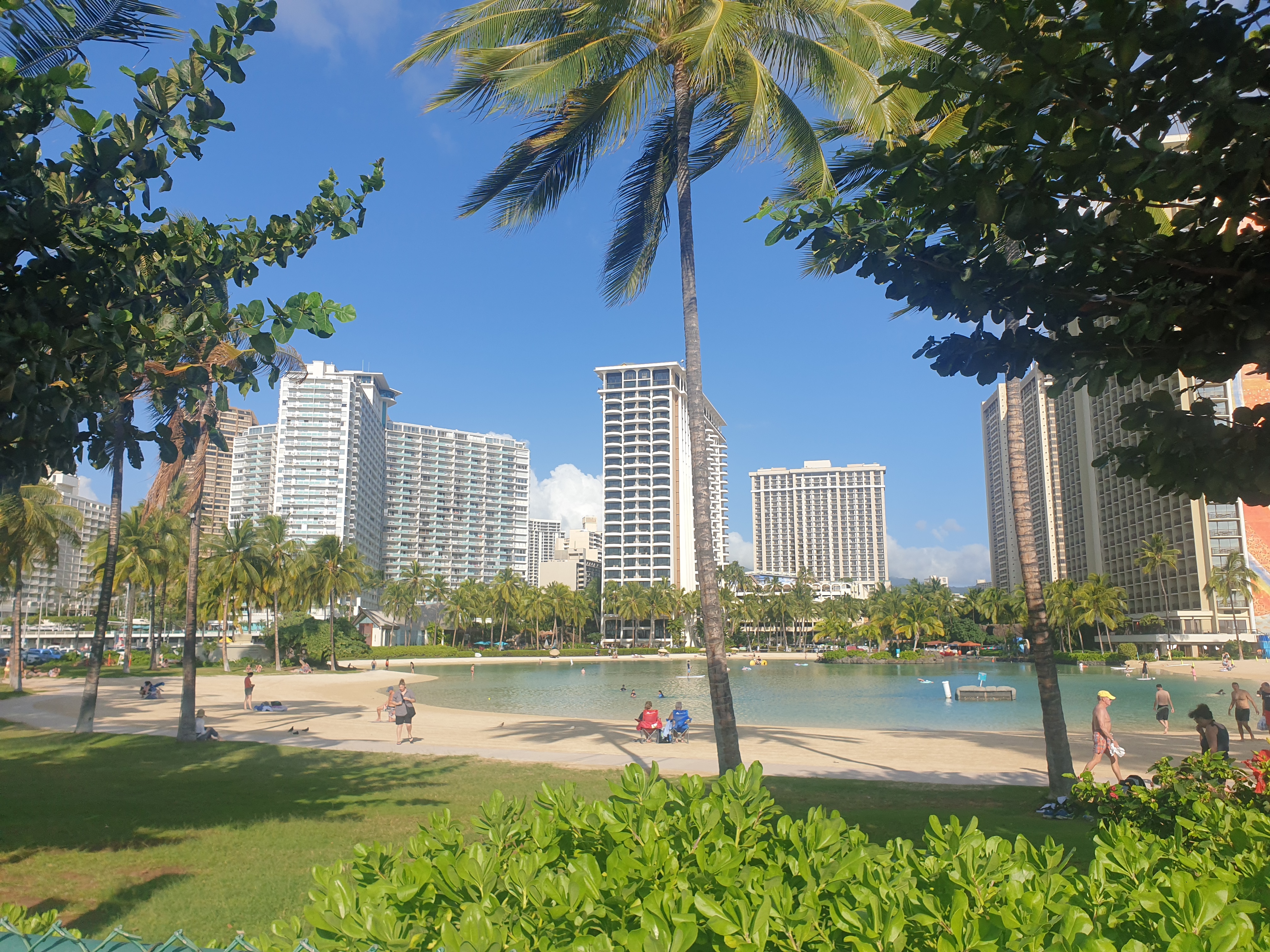 힐튼라군 주변에는 사람들이 많이 있어요