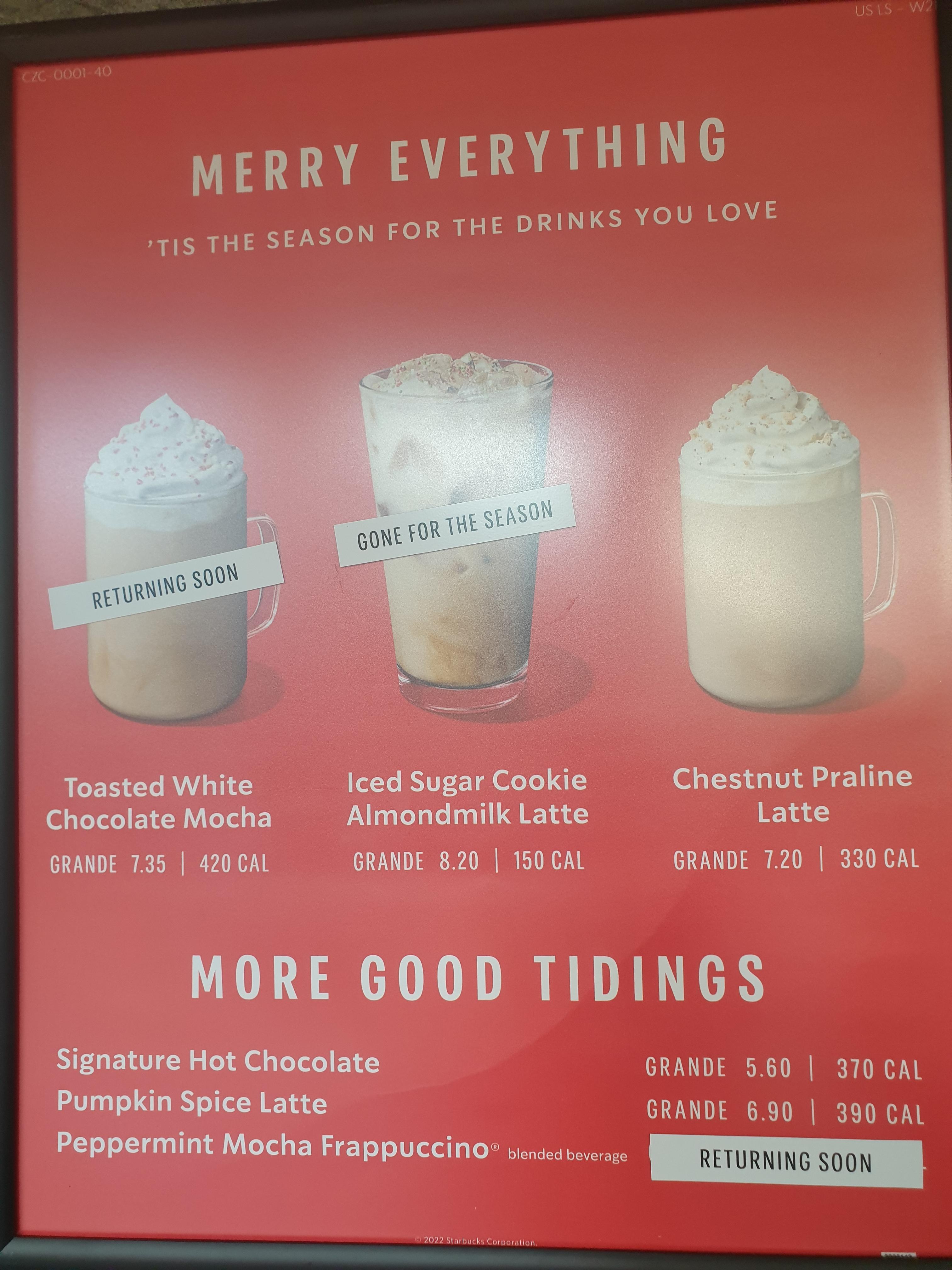 스타벅스 시즌메뉴와 메뉴판