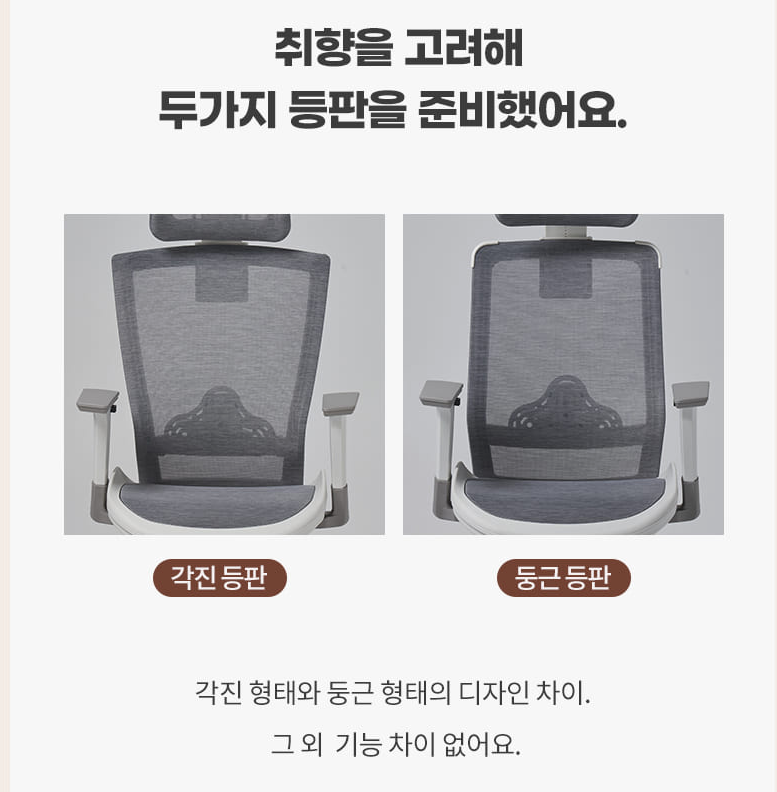 각진 등판이냐 둥근 등판이냐 디자인 차이입니다