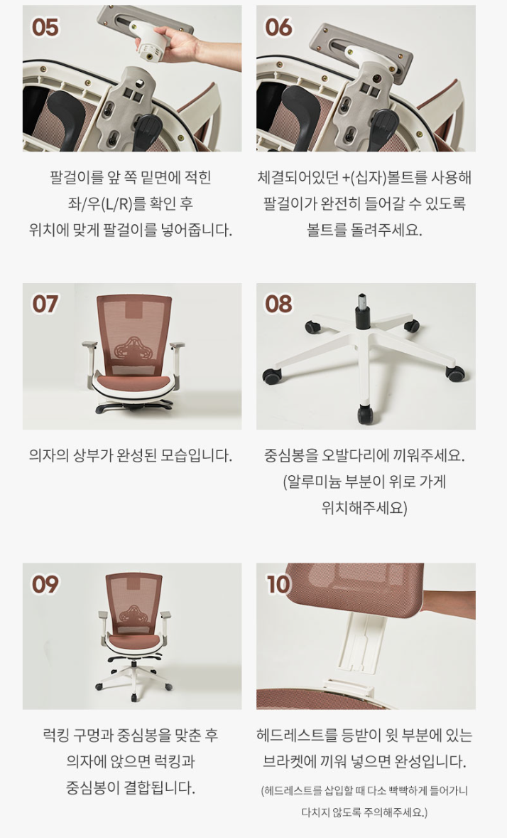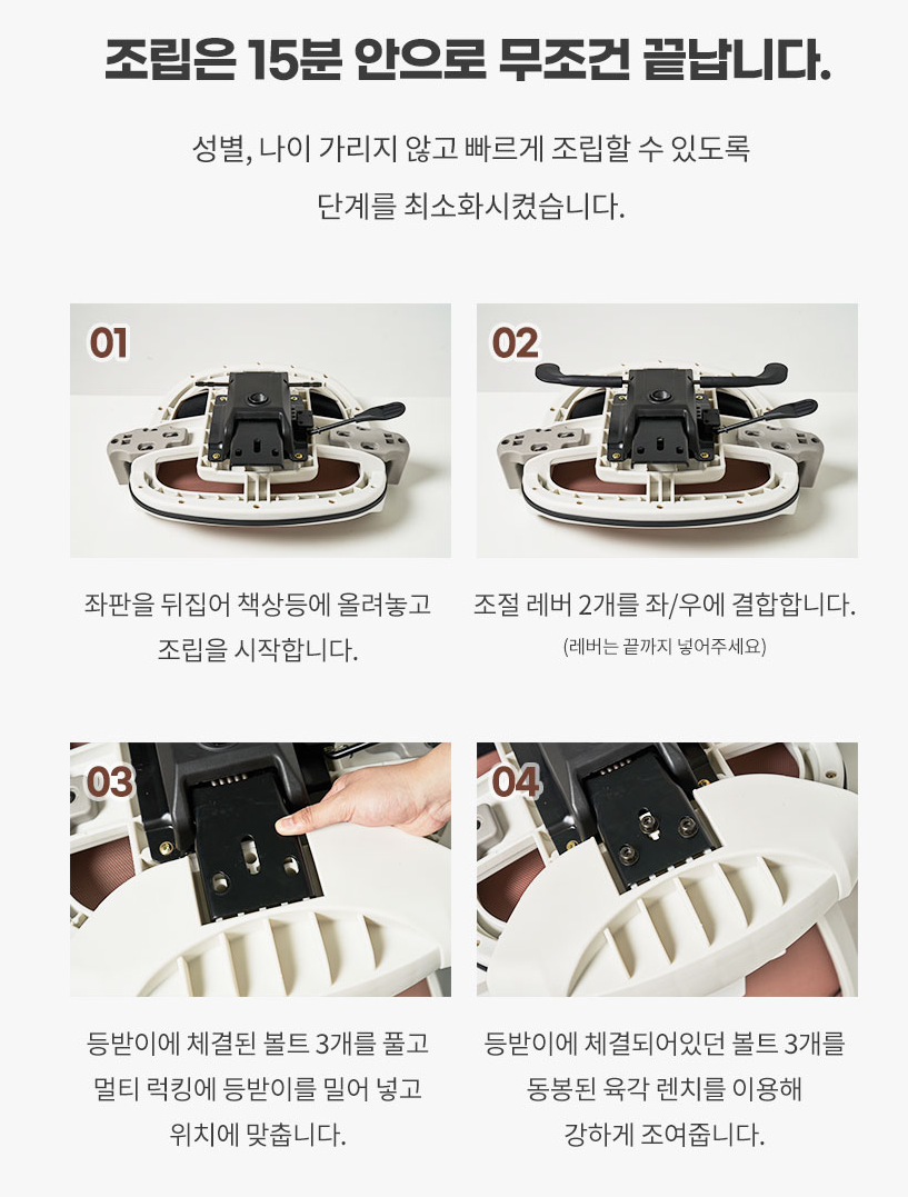 의자를 탁자 같은 곳에 두고 조립하면 편해요