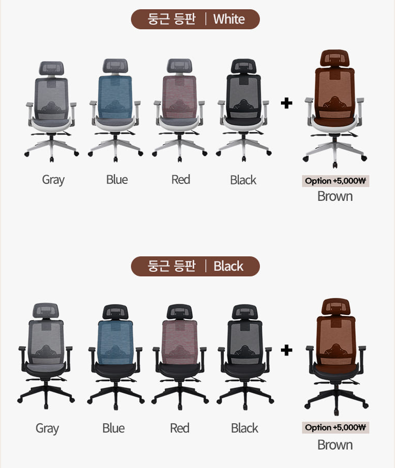 저는 둥근 등판에 화이트를 고르고 Brown으로!
