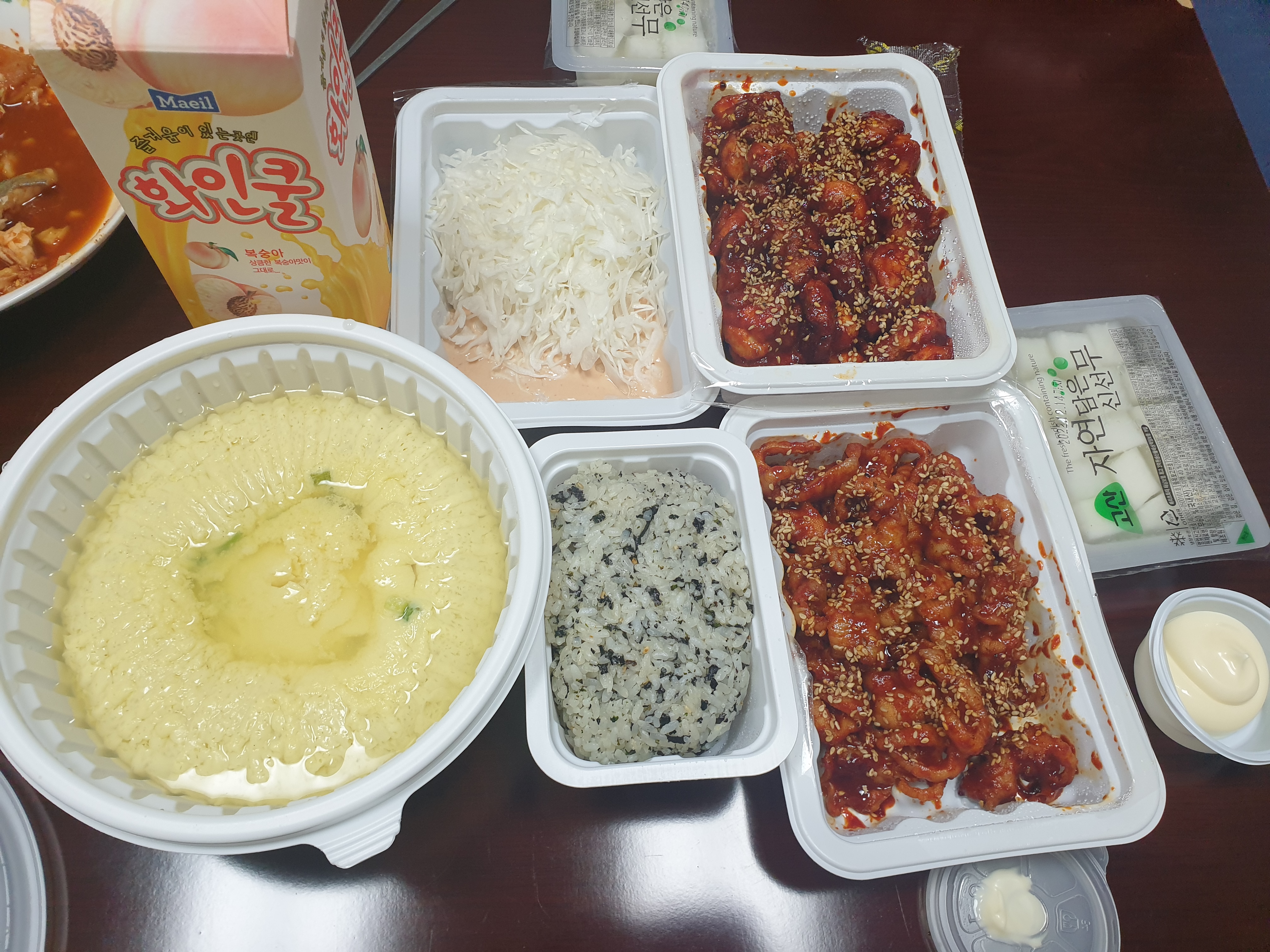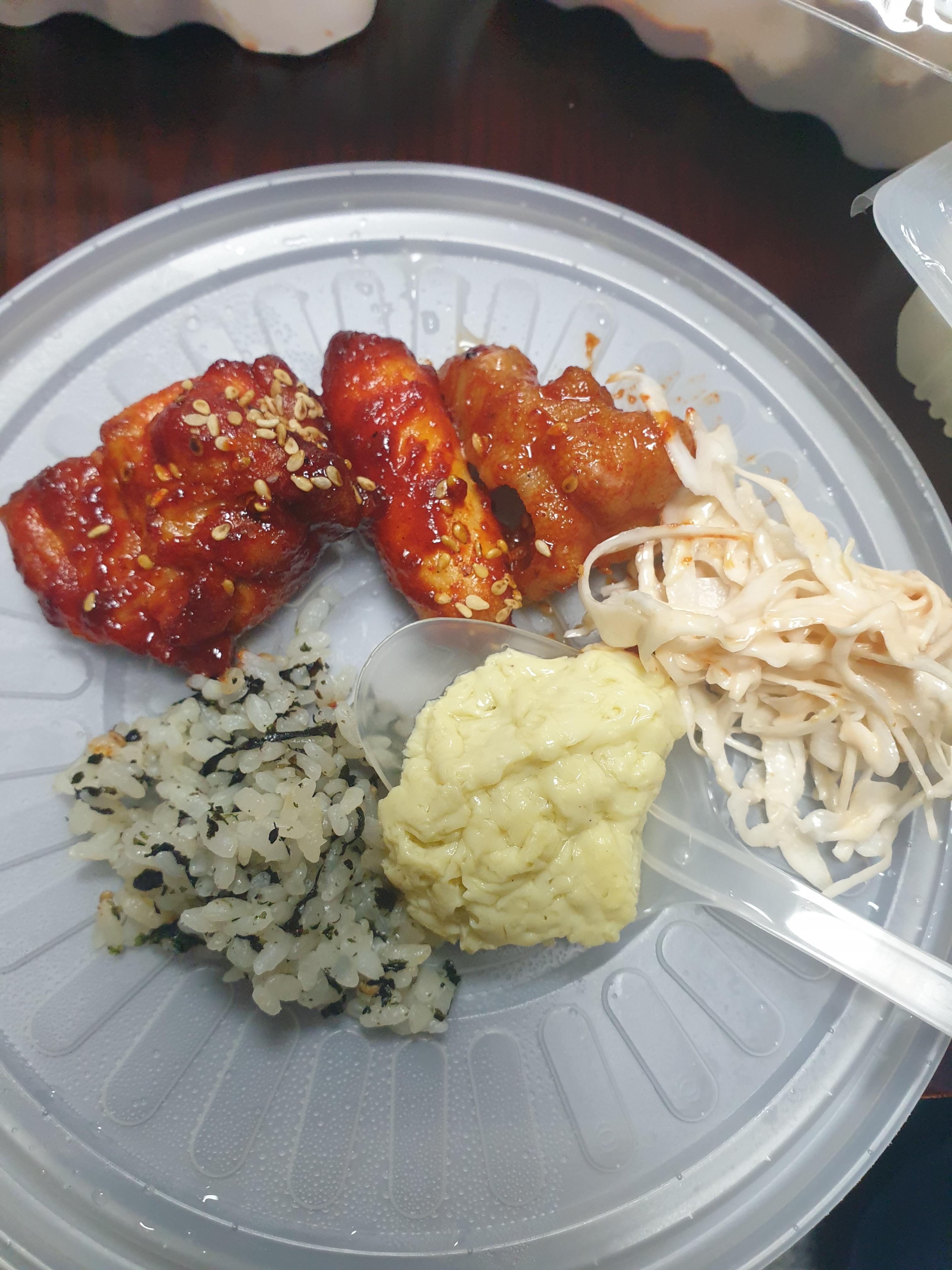 제가 먹을 주먹밥과 순살불닭을 올려두었는데