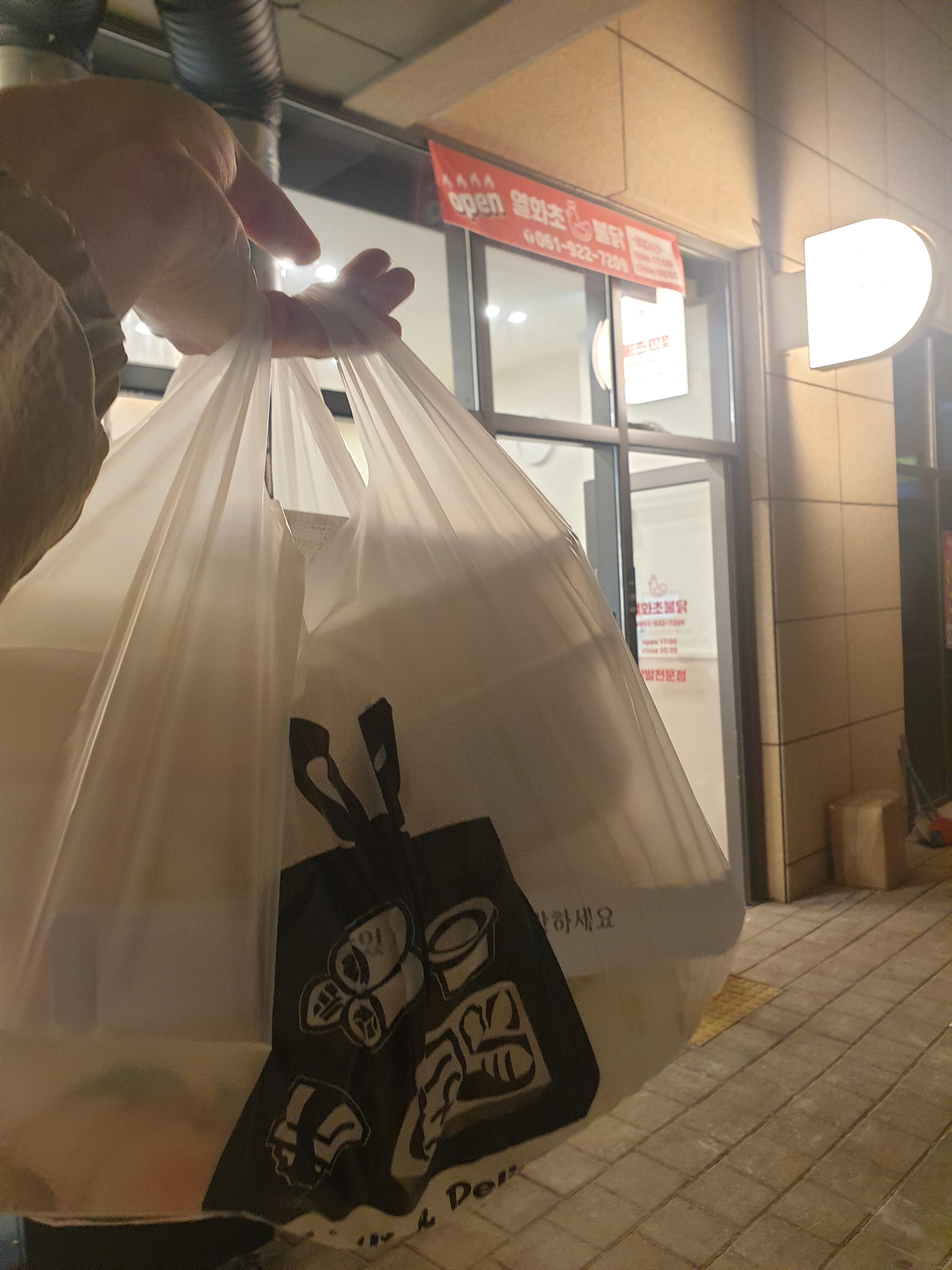산책을 하며 집에 돌아가는 길에 포장주문을 해요