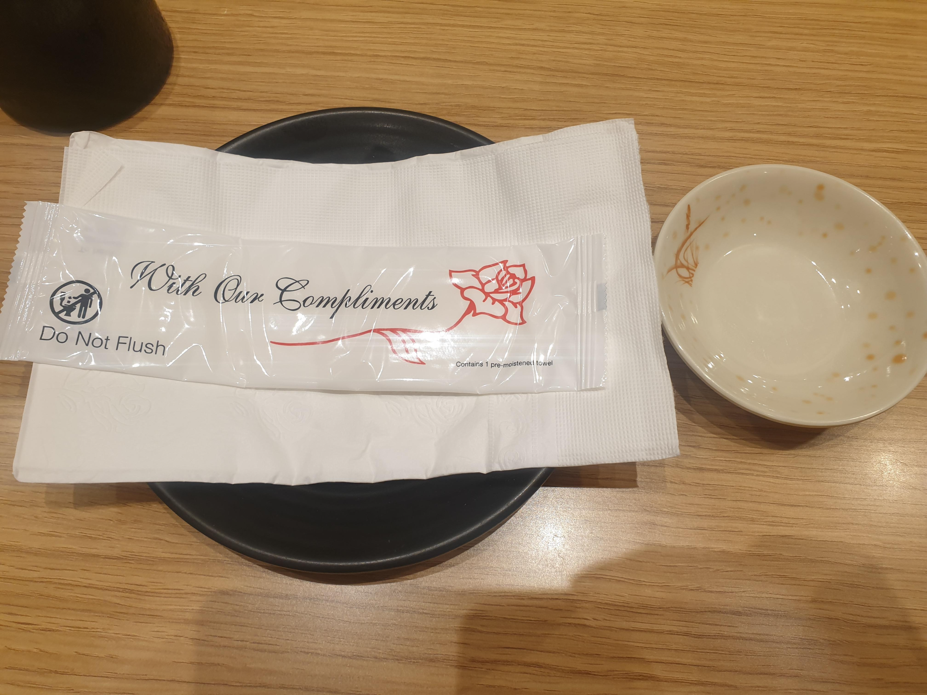 메뉴를 주문하니 물티슈랑 식기가 나와요