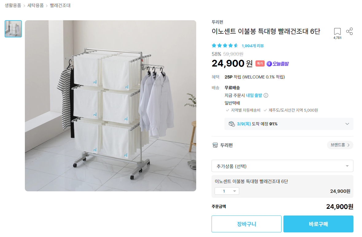 이불 건조용으로 구매한 빨래 건조대 6단 빨래 널기도 좋아요