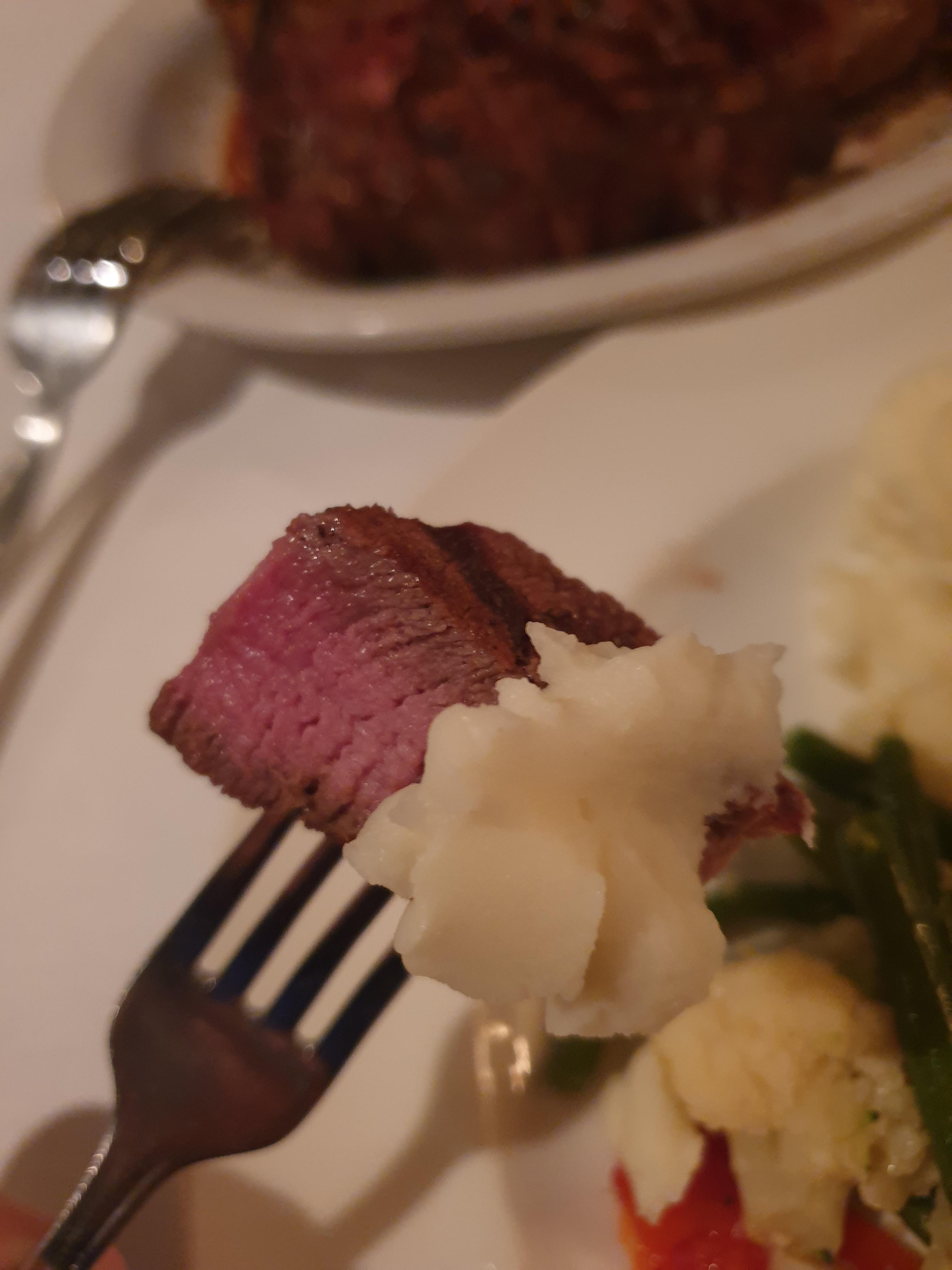 스테이크를 가져와서 보여줍니다!