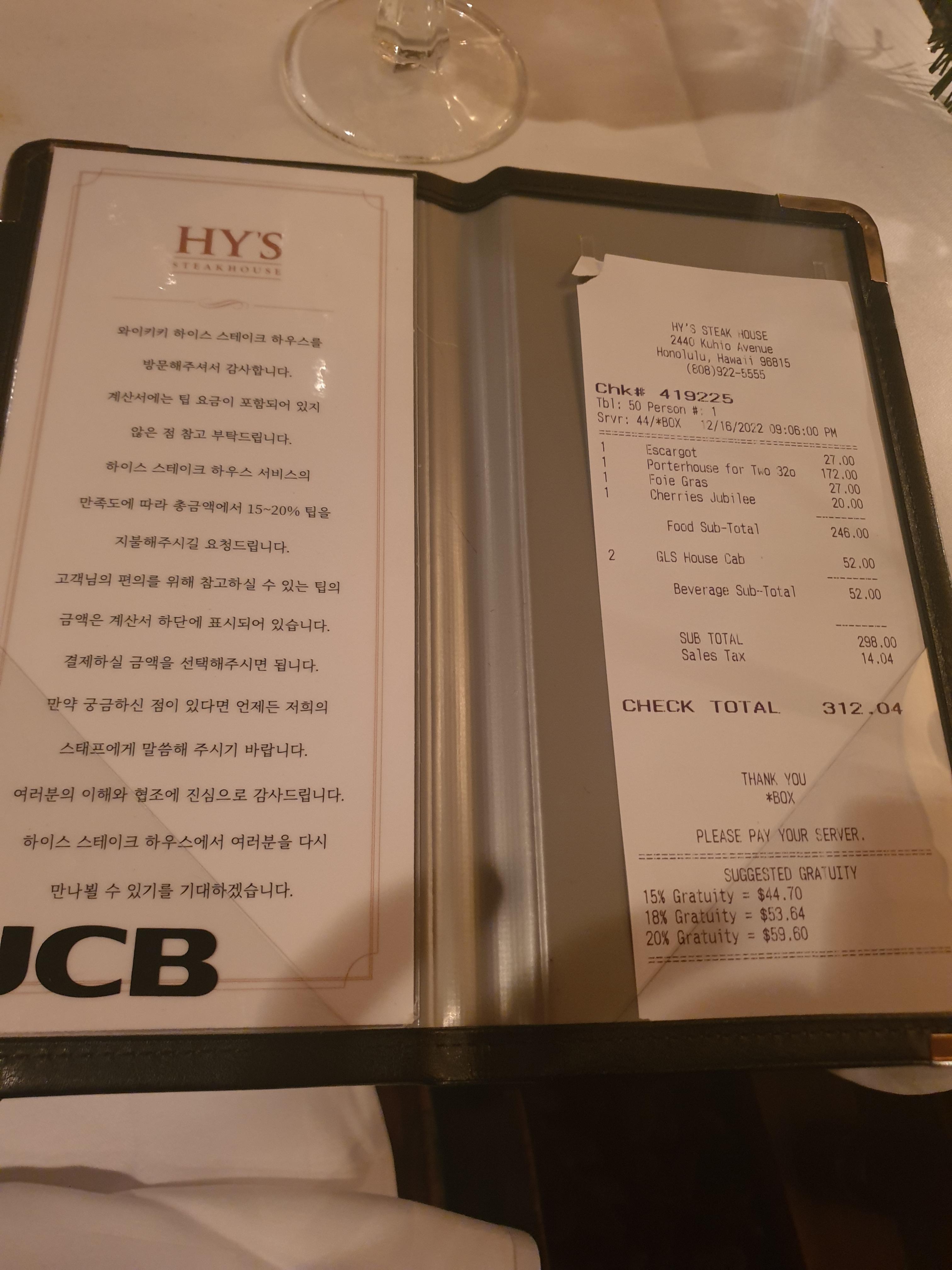 하와이 오하우 3대 스테이크 맛집 HY'S STEAK HOUSE