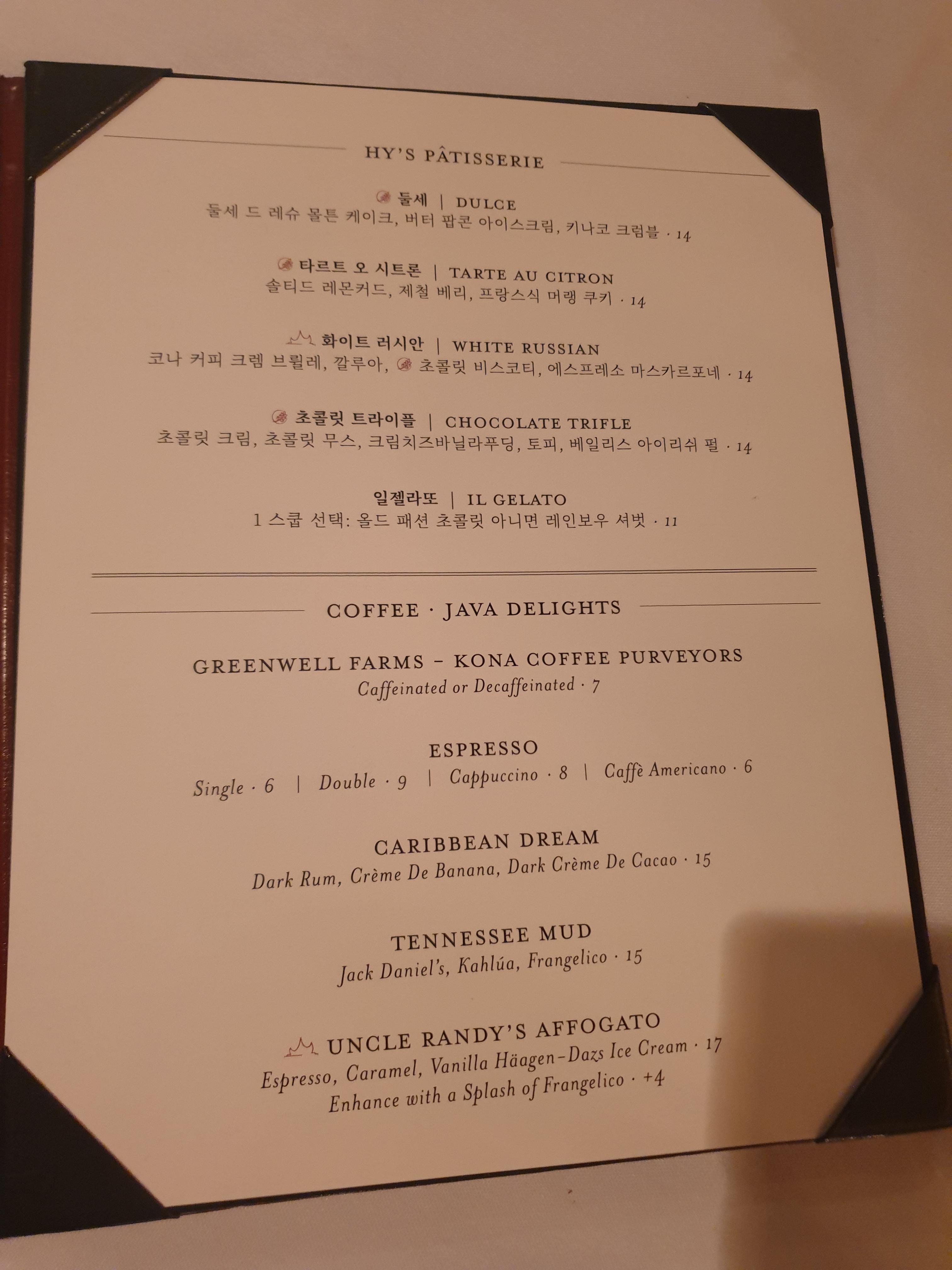후식 메뉴판이 등장했습니다