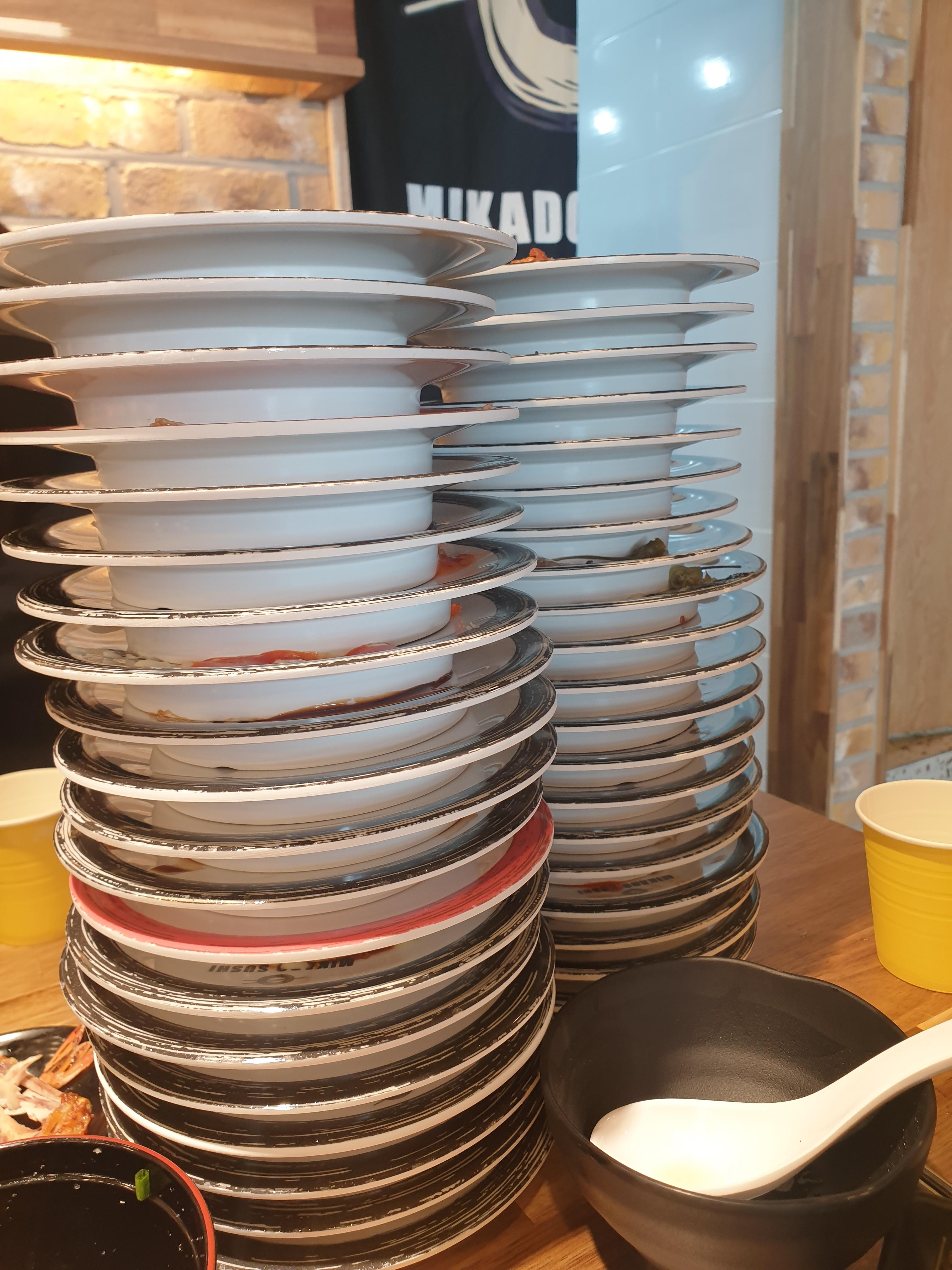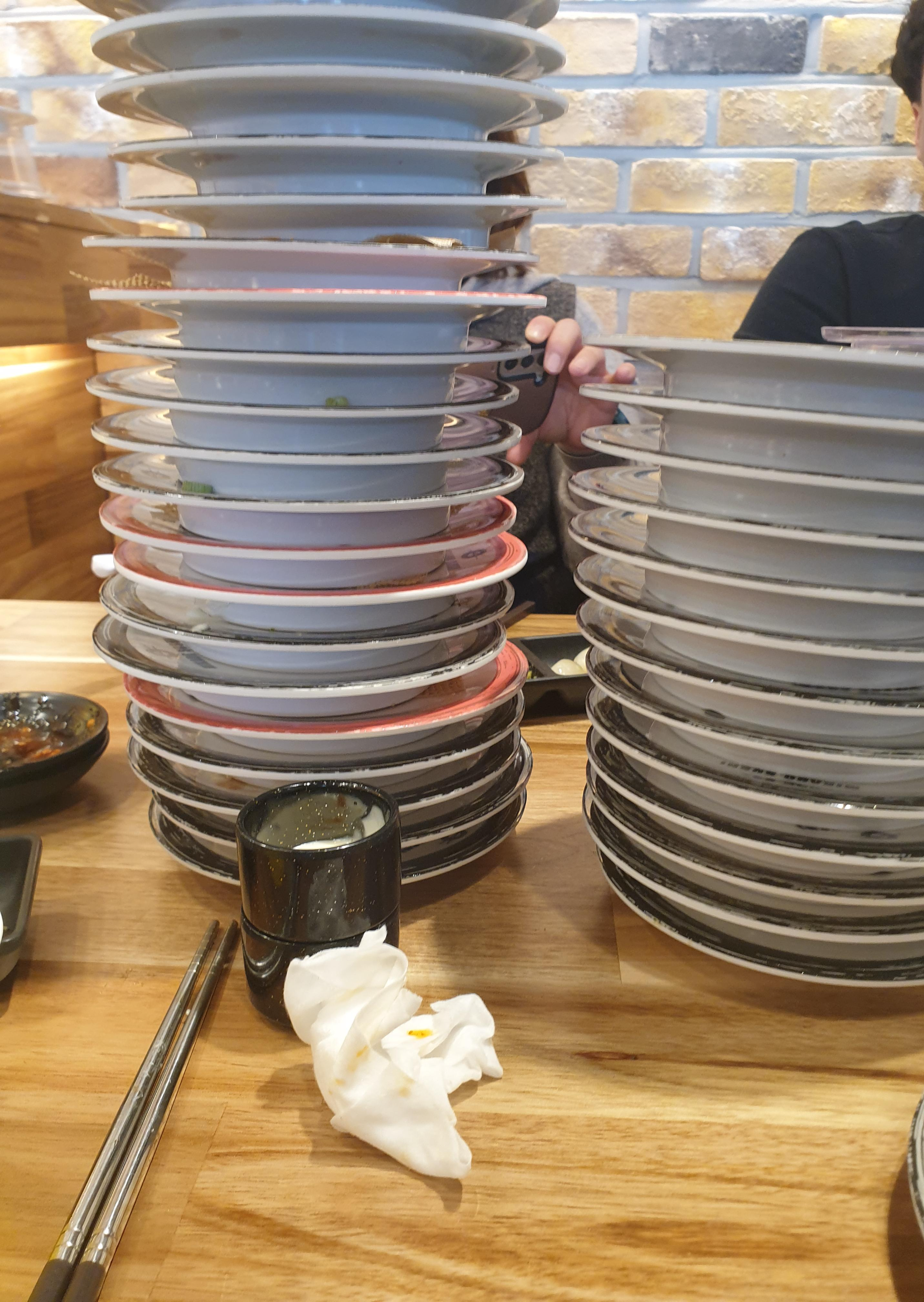 레일에서 내린 초밥접시는 다시 올리시면 안 되고