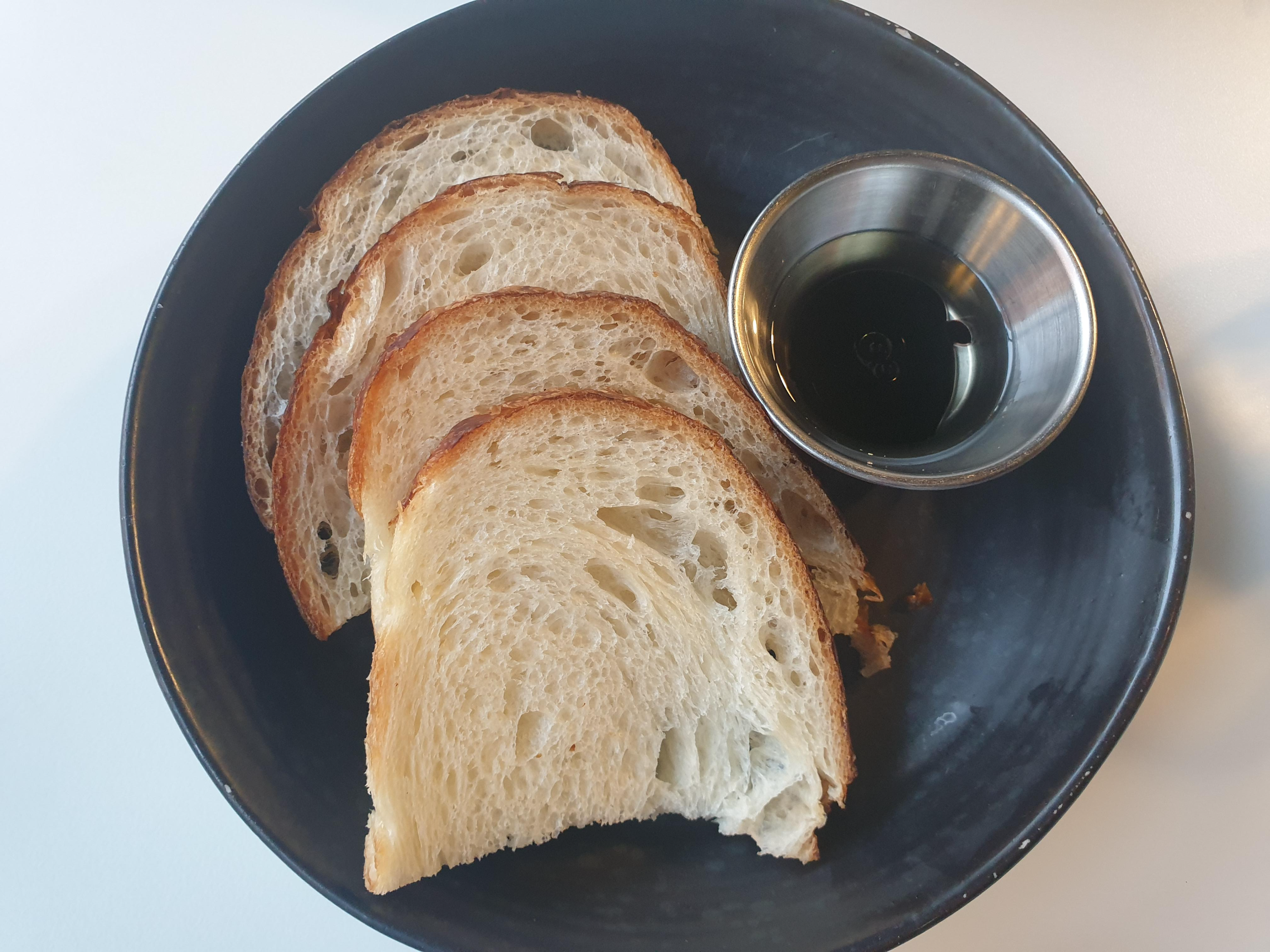 식전빵은 발사믹 식초와 올리브오일에 콕 찍어 먹어요
