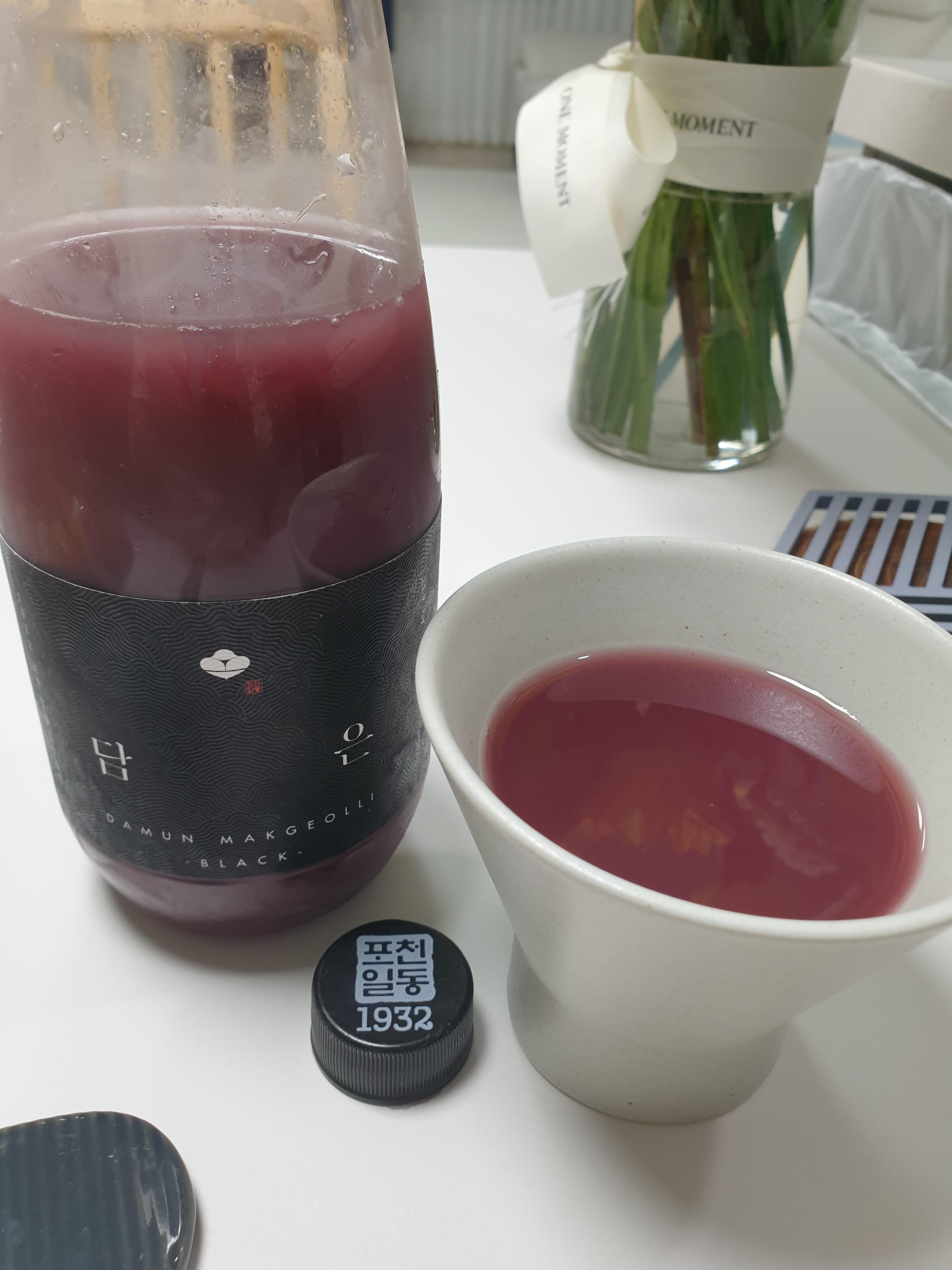 담은 블랙 막걸리와 약주인 청명주를 먹었어요