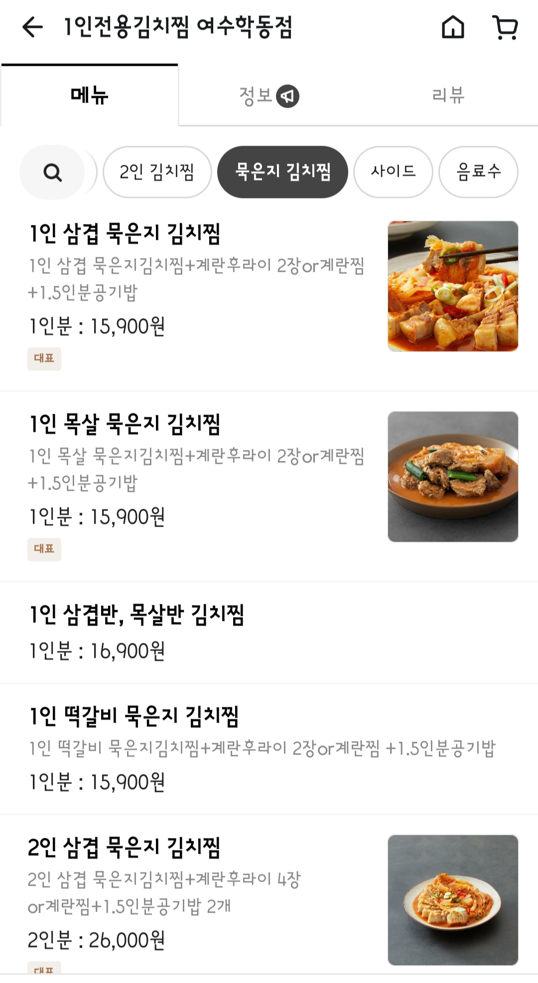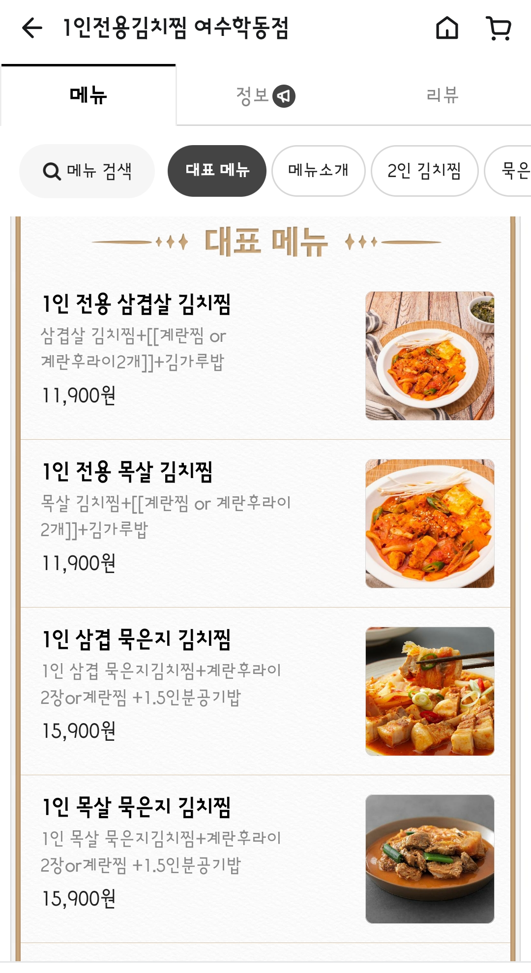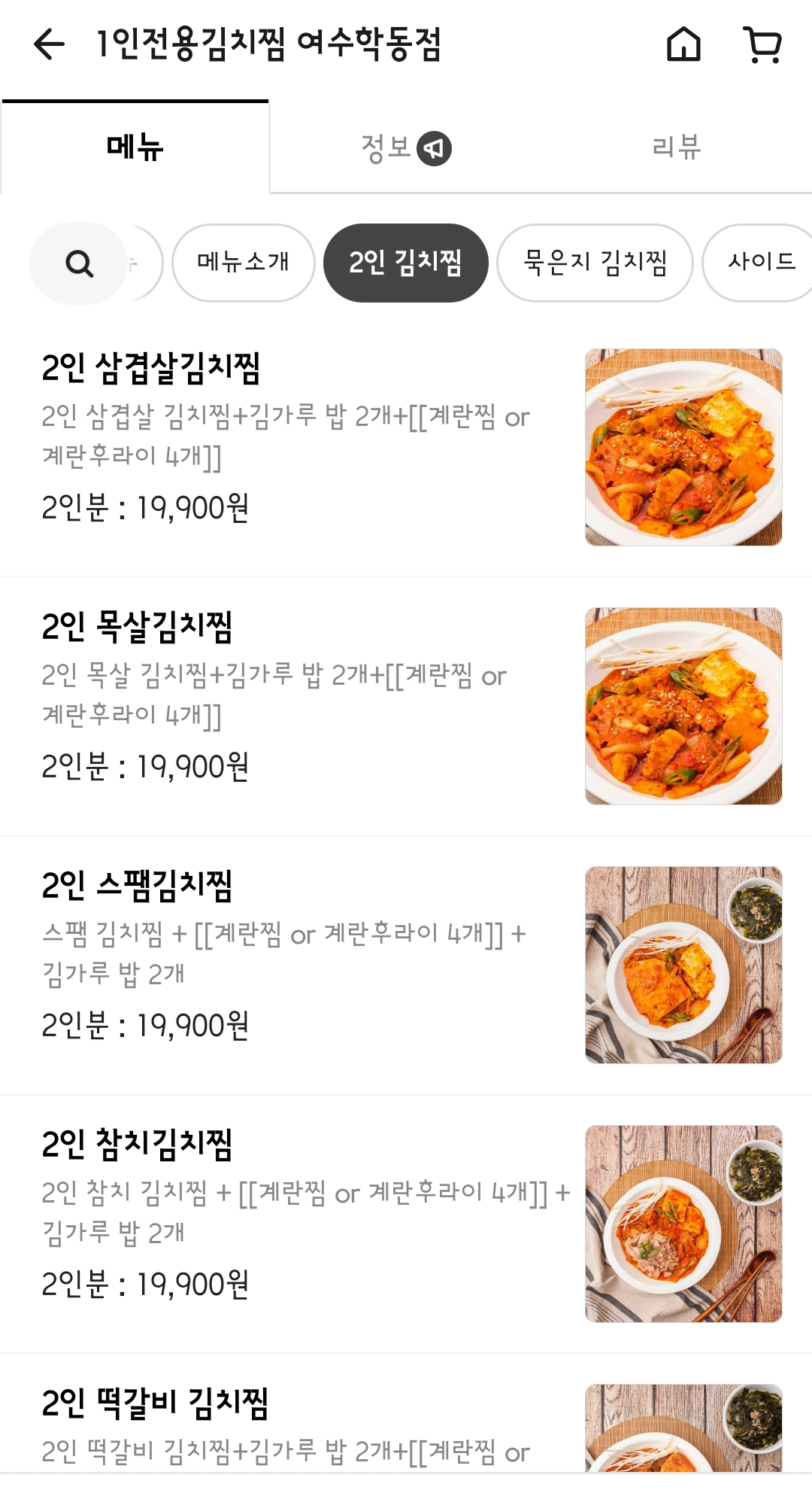 어떤 걸 시킬까 검색하다가 발견한 김치찜집