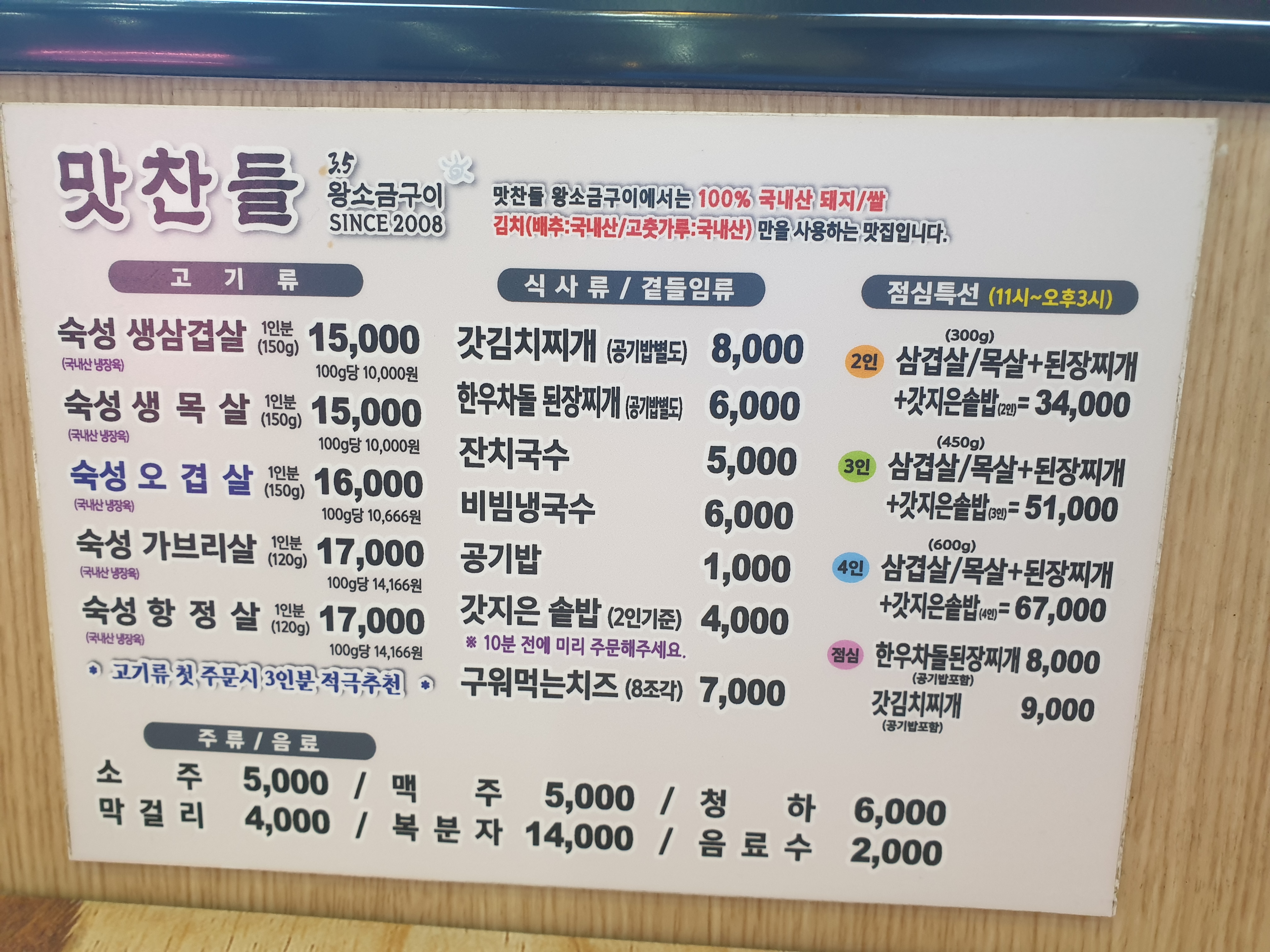 메뉴판입니다