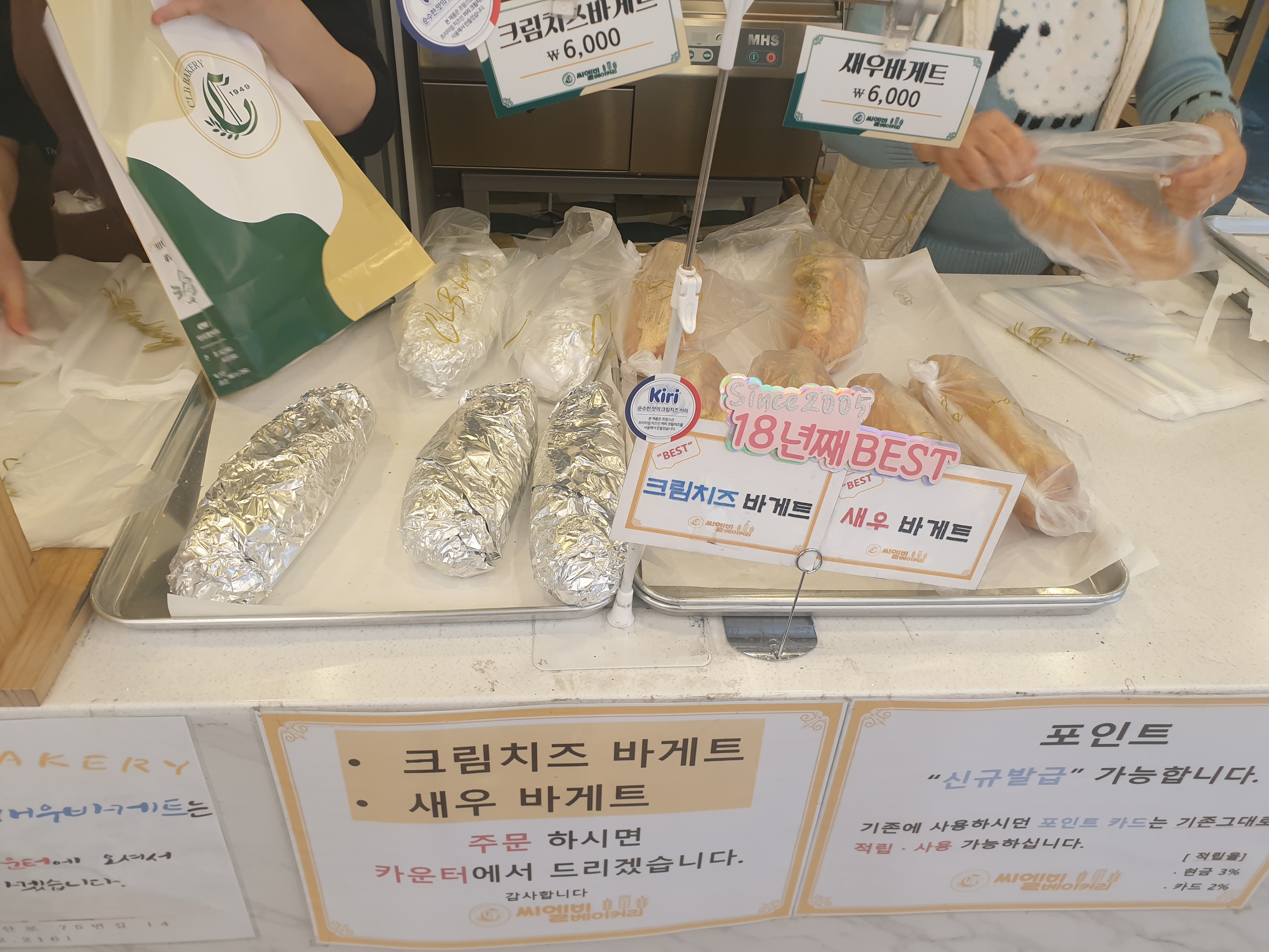 카운터에서 크림치즈 바게트와 새우 바게트 주문 가능!