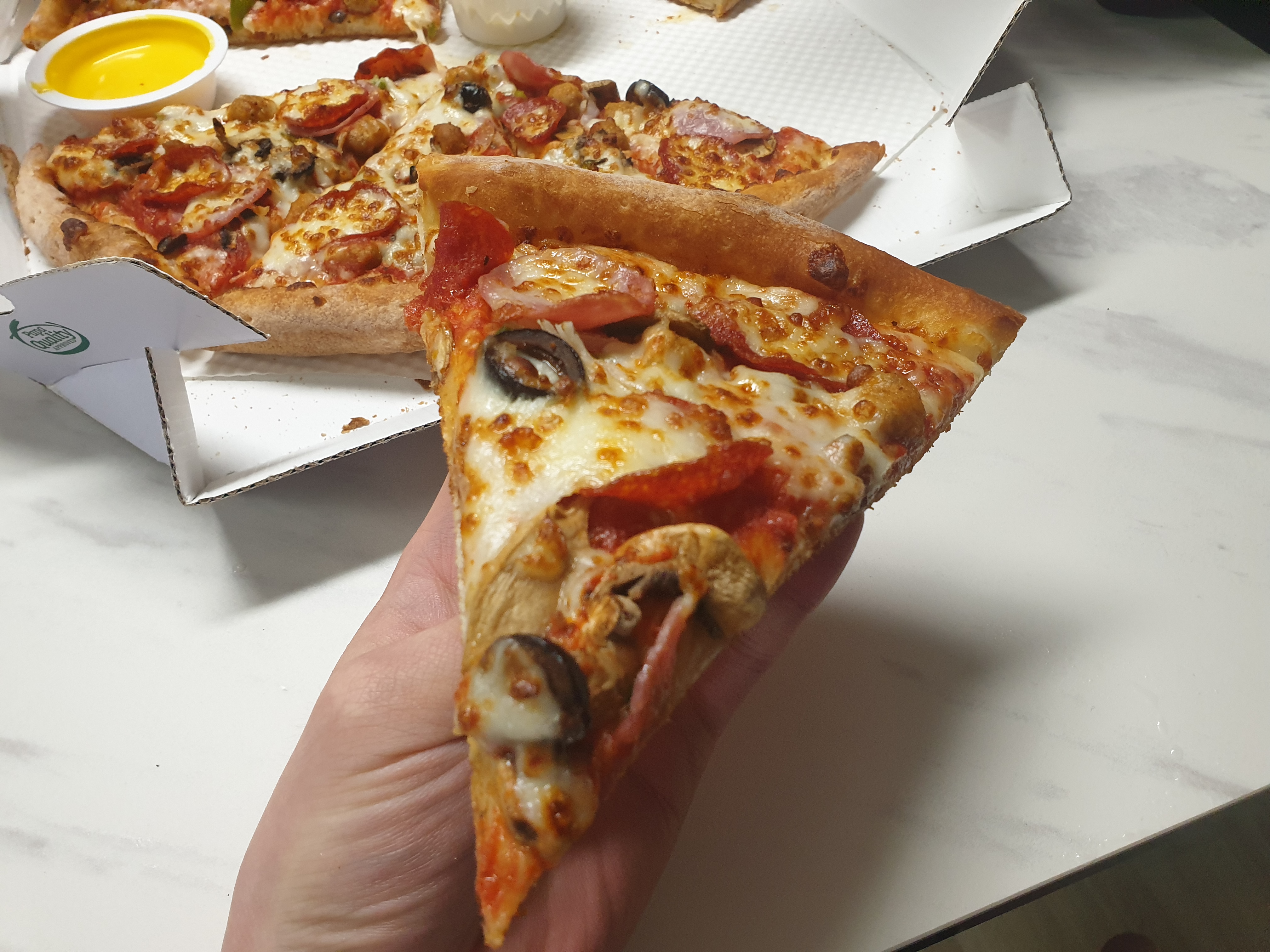 다음엔 토핑 잔뜩 올라가 있는 한국 피자를 시키는 걸로