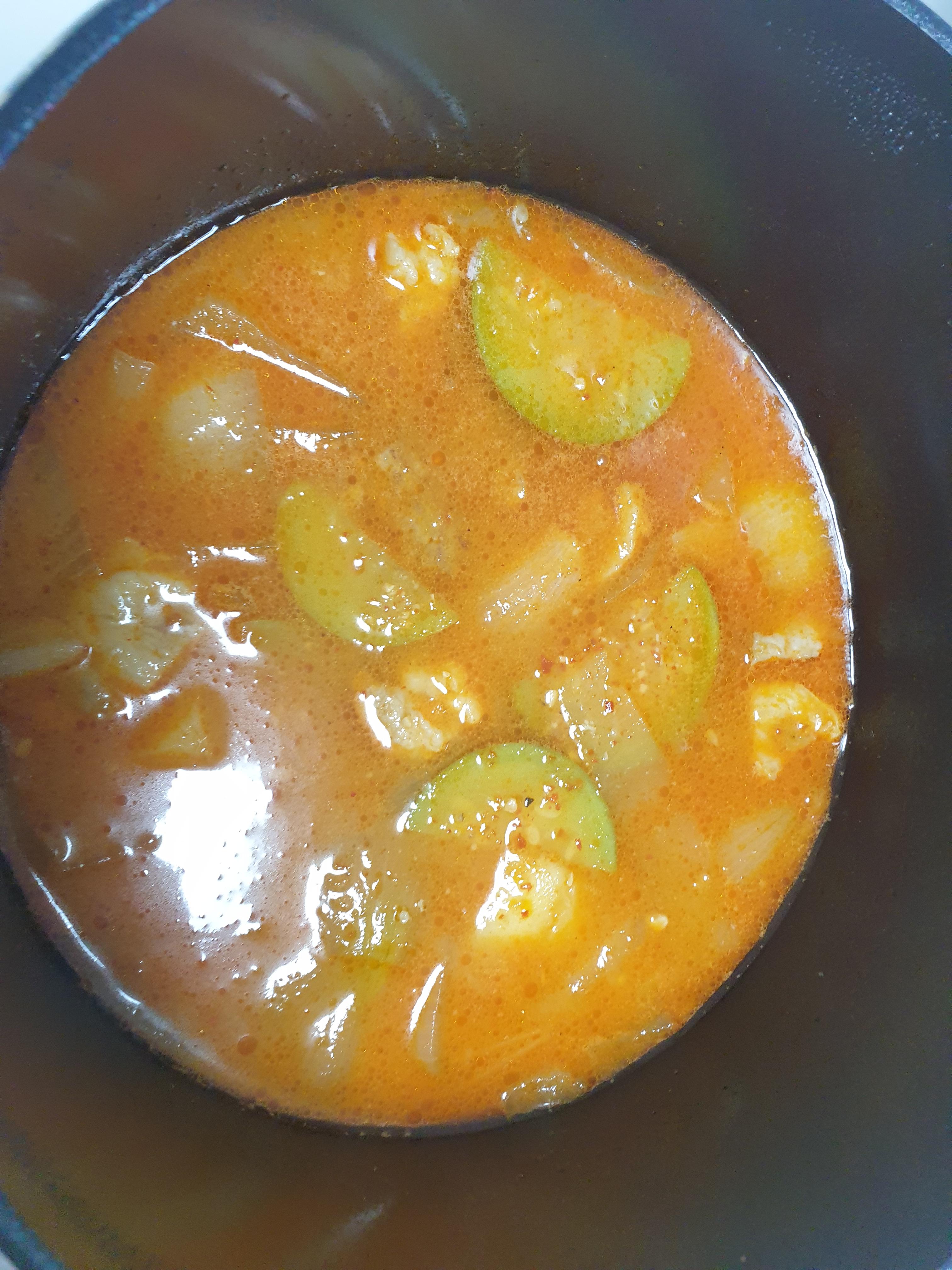 남은 채소는 된장찌개를 끓여보았습니다