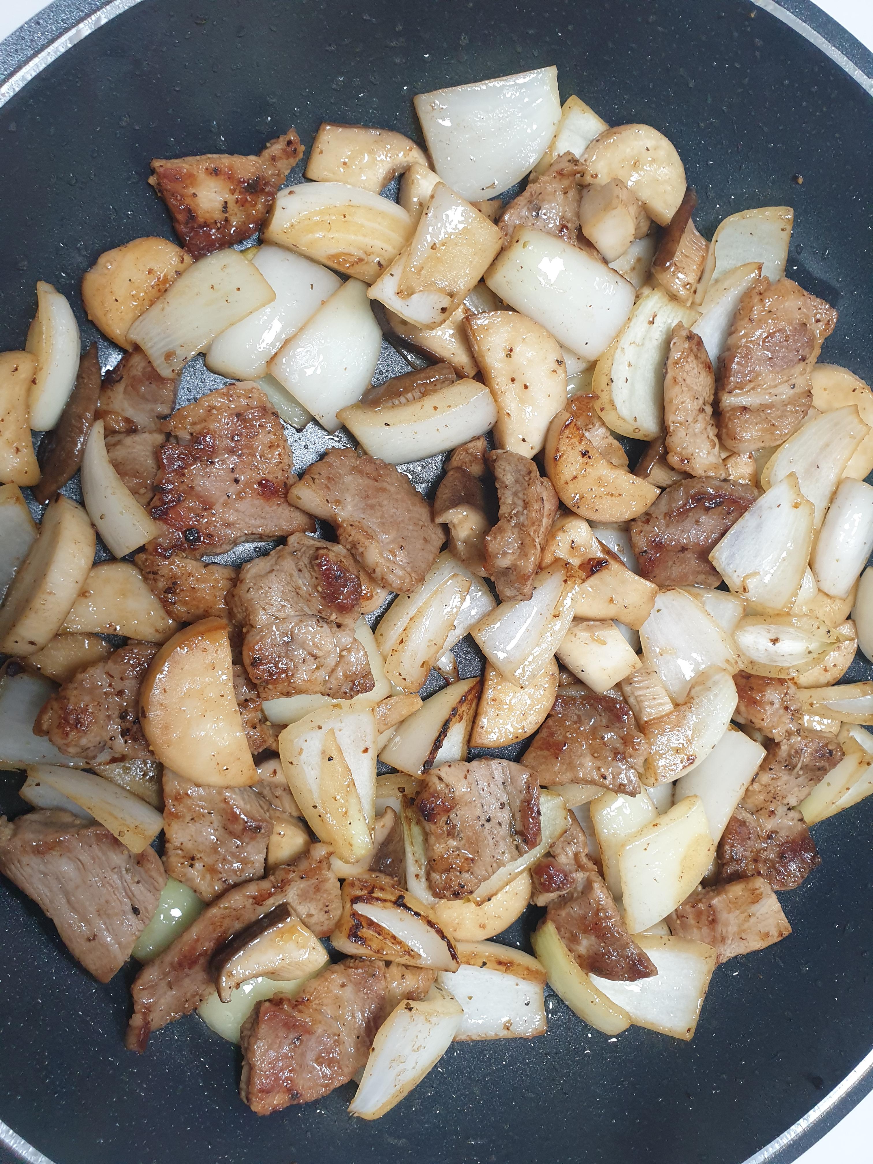 집에 조금 남아있던 목살과 채소를 같이 볶았구요