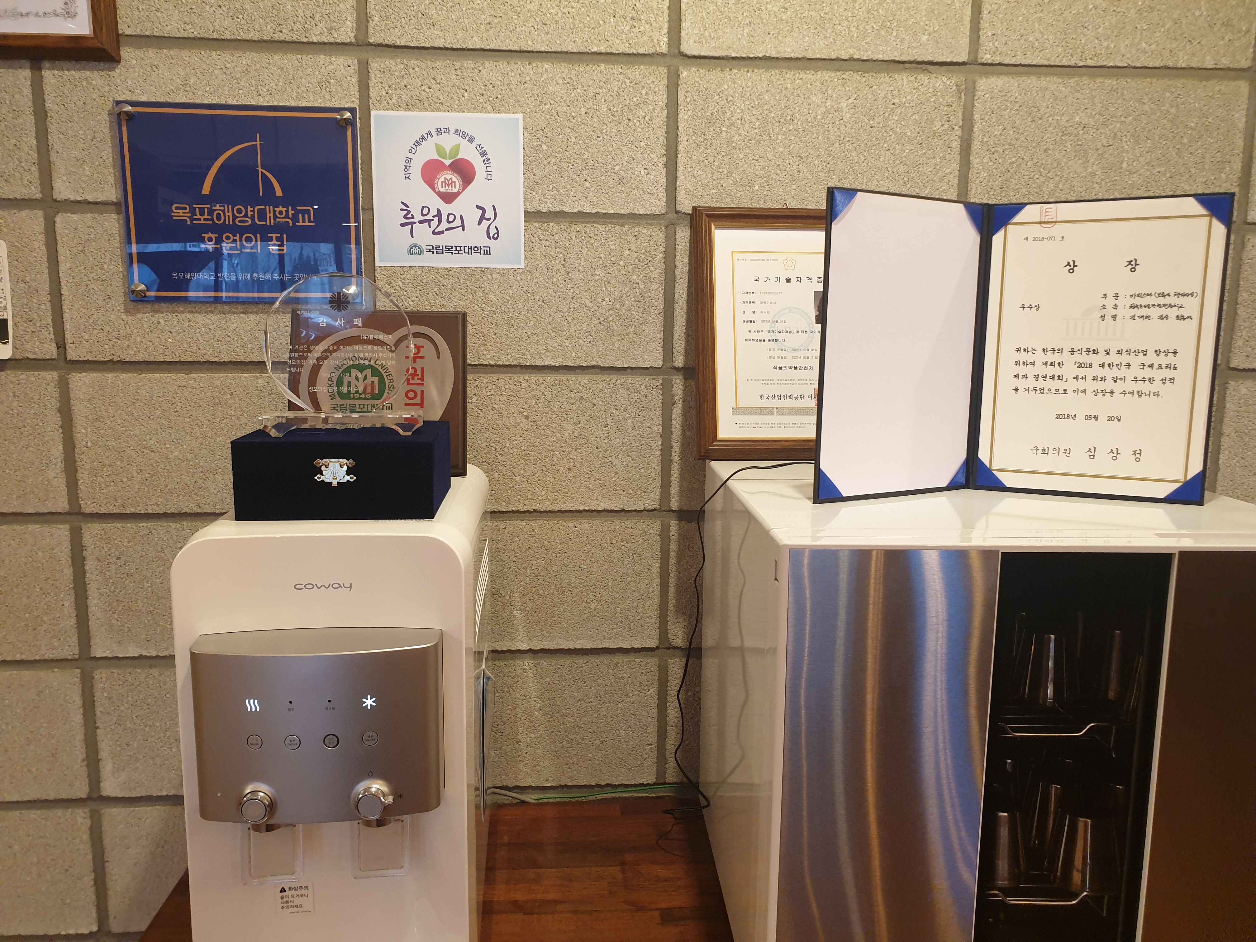 저곳에 옆의 정수기를 이용해서 물을 담고