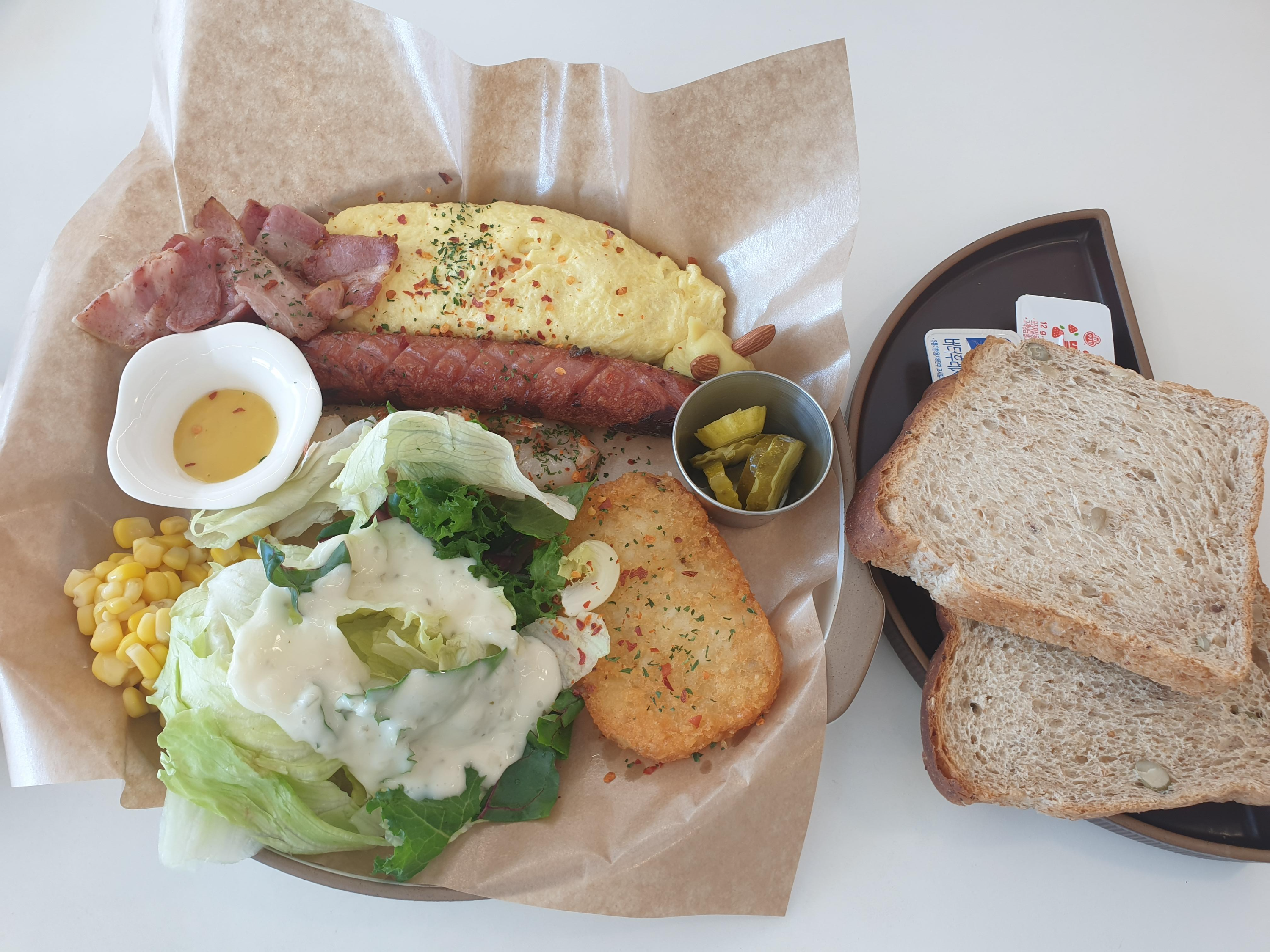 오믈렛 브런치 브레드를 거의 다 먹는 동안에도