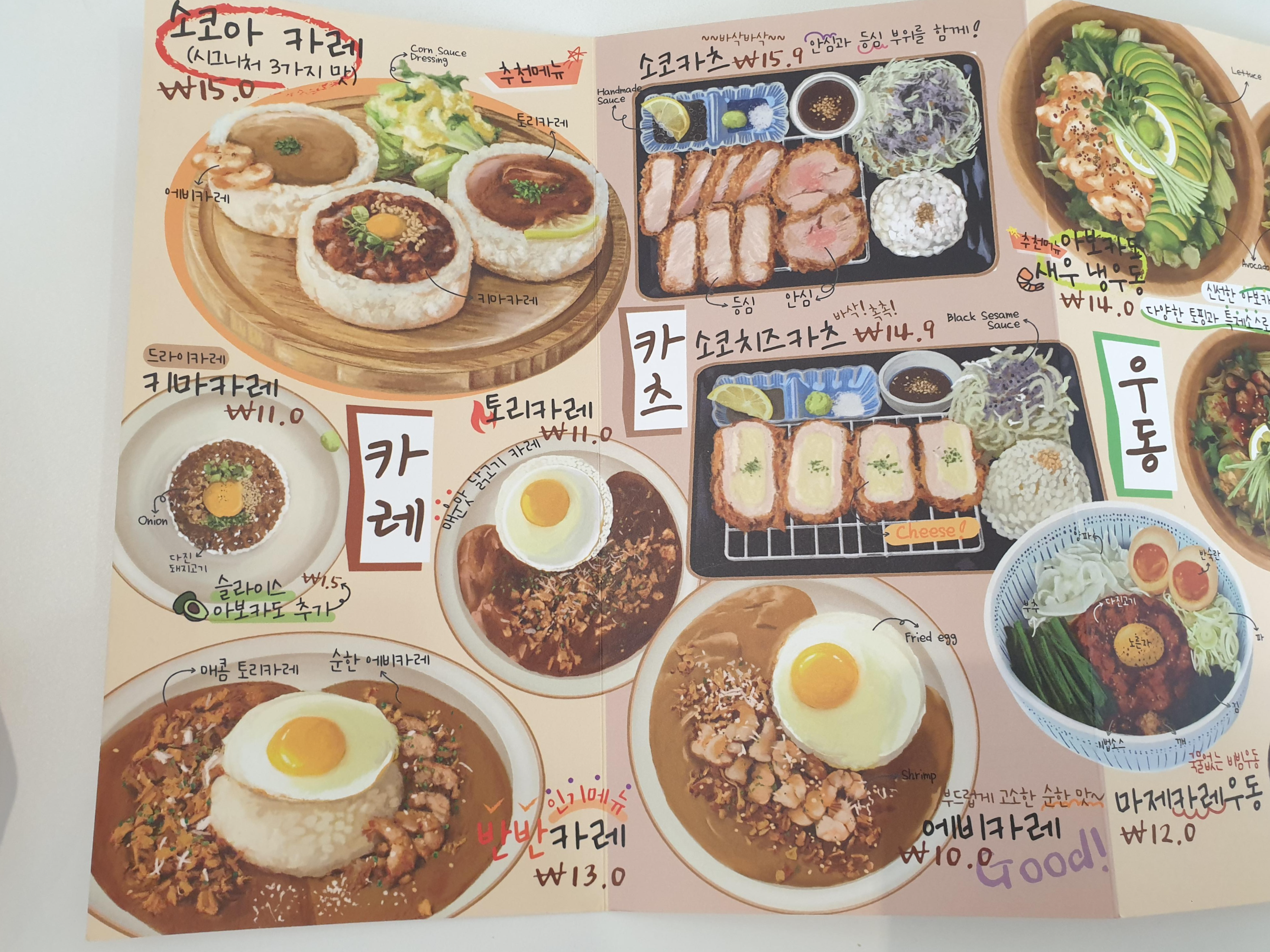 메뉴판을 보여주시면서 돈가스류는 다 안된데요