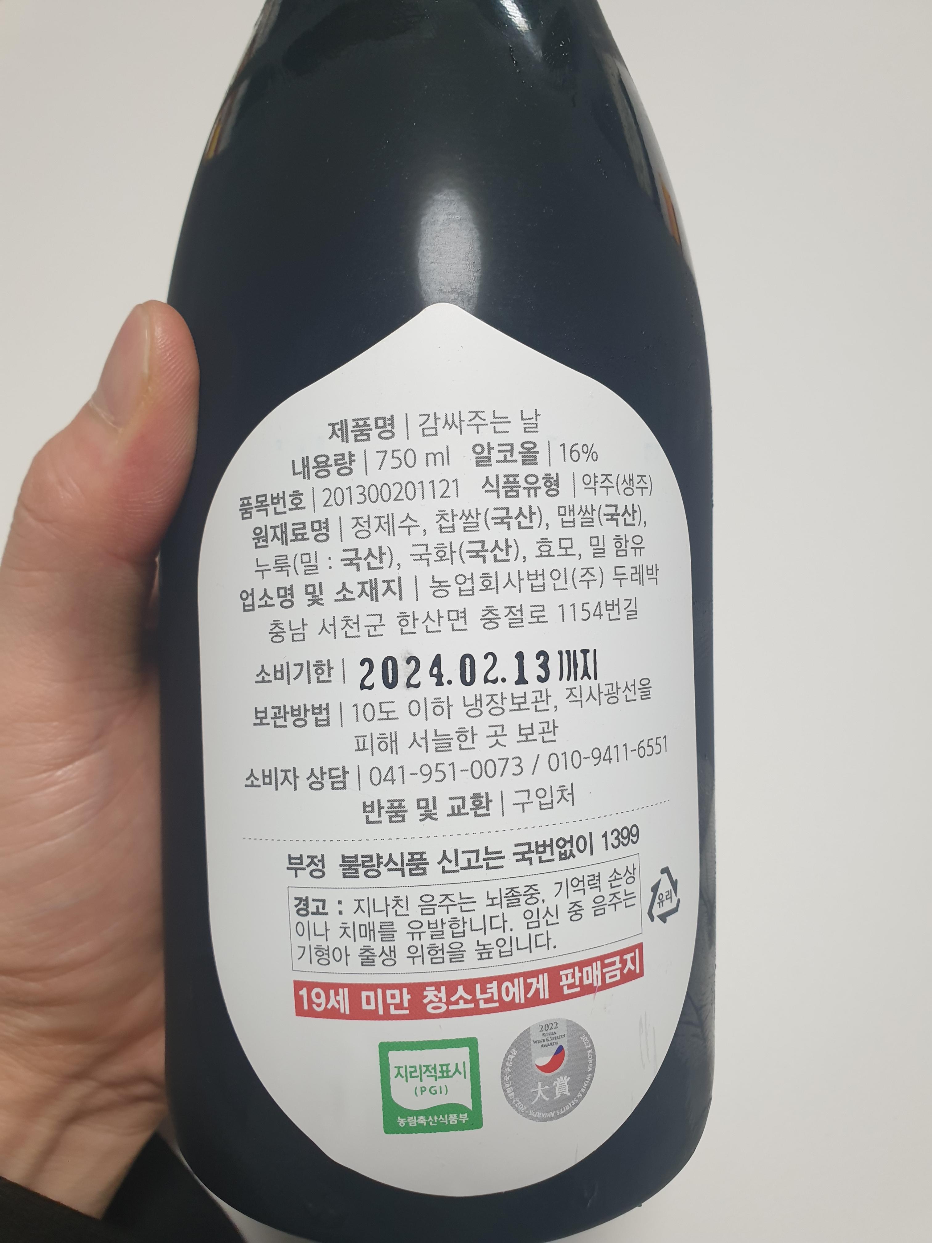 감싸주는 날 - 약주, 750ml, 16%, 16,000원