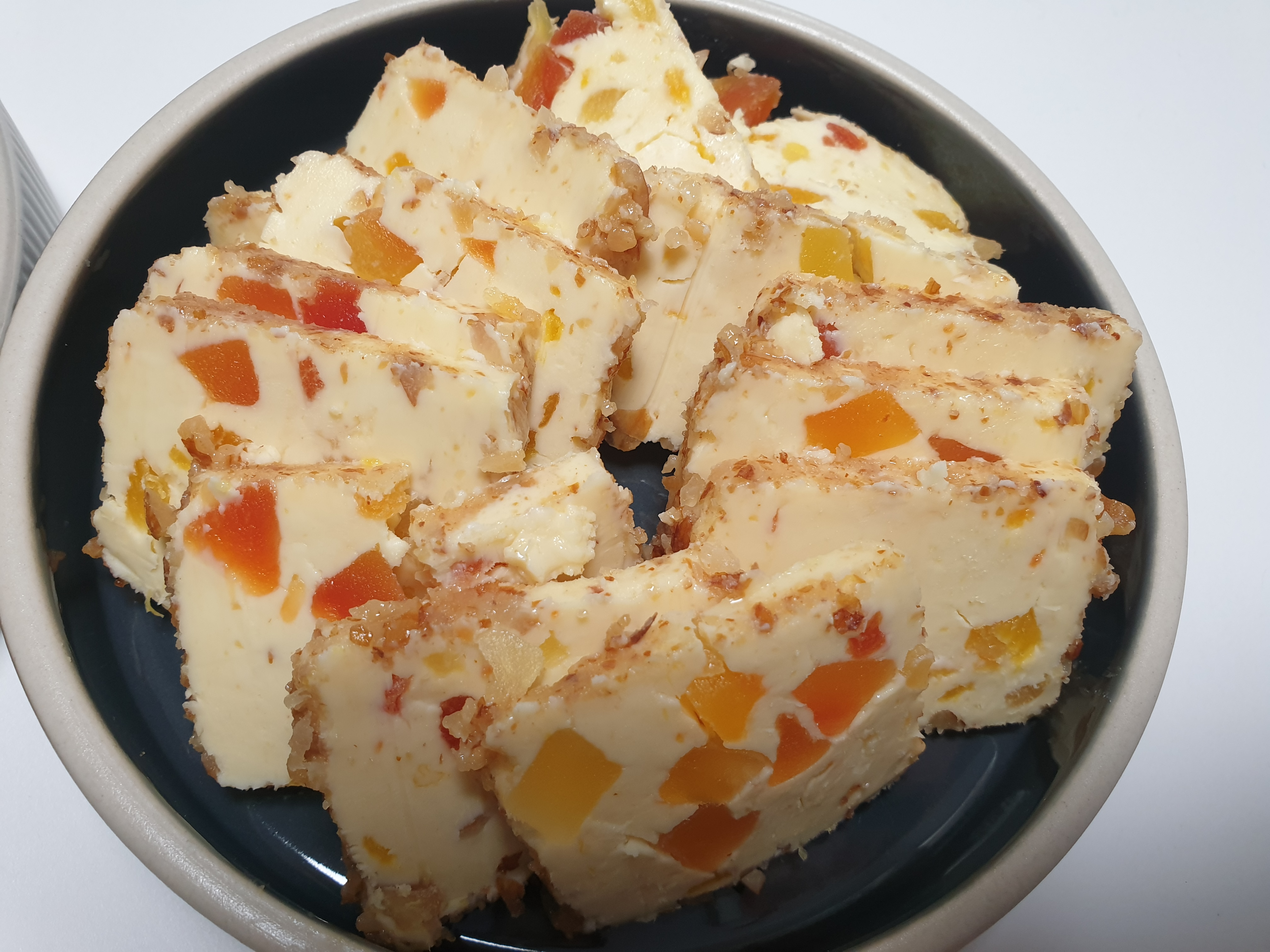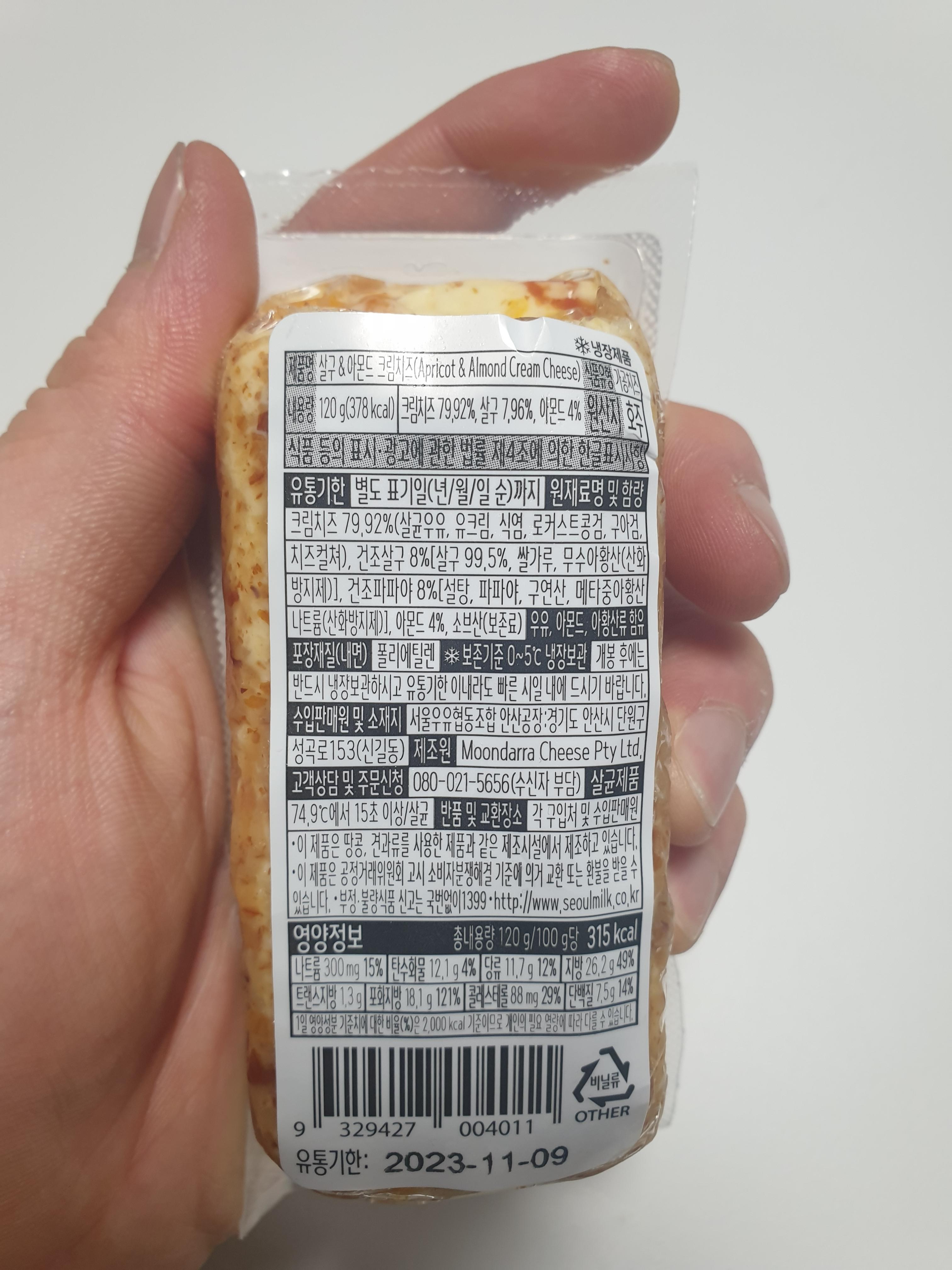 부드러운 치즈에 살구와 아몬드가 들어있으니