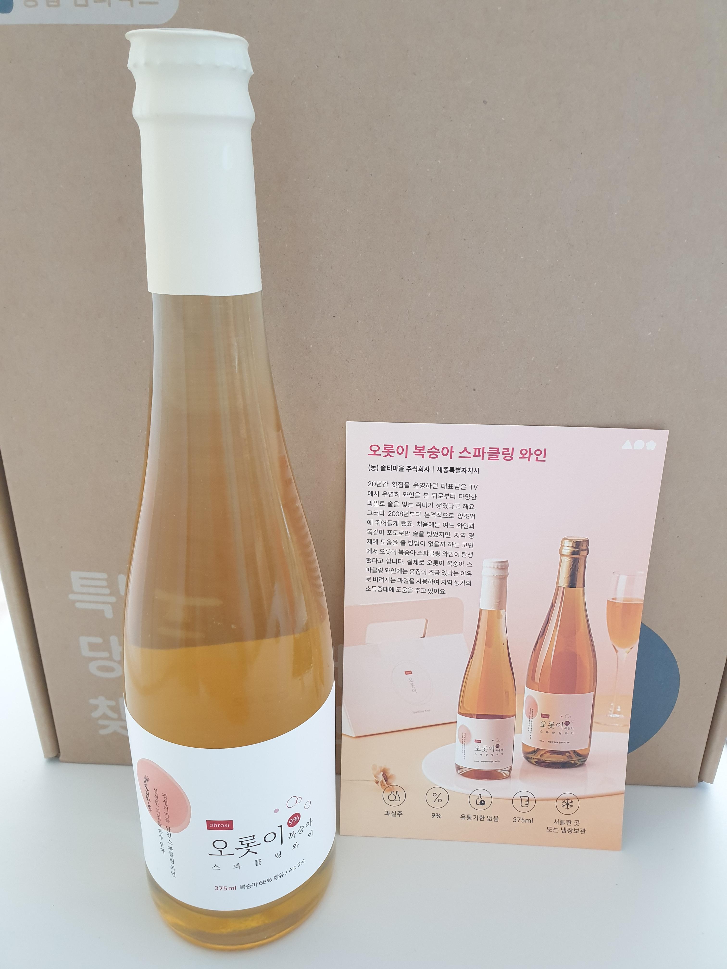 1. 오롯이 복숭아 스파클링 와인 - 과실주, 9%, 375ml, 15,000원