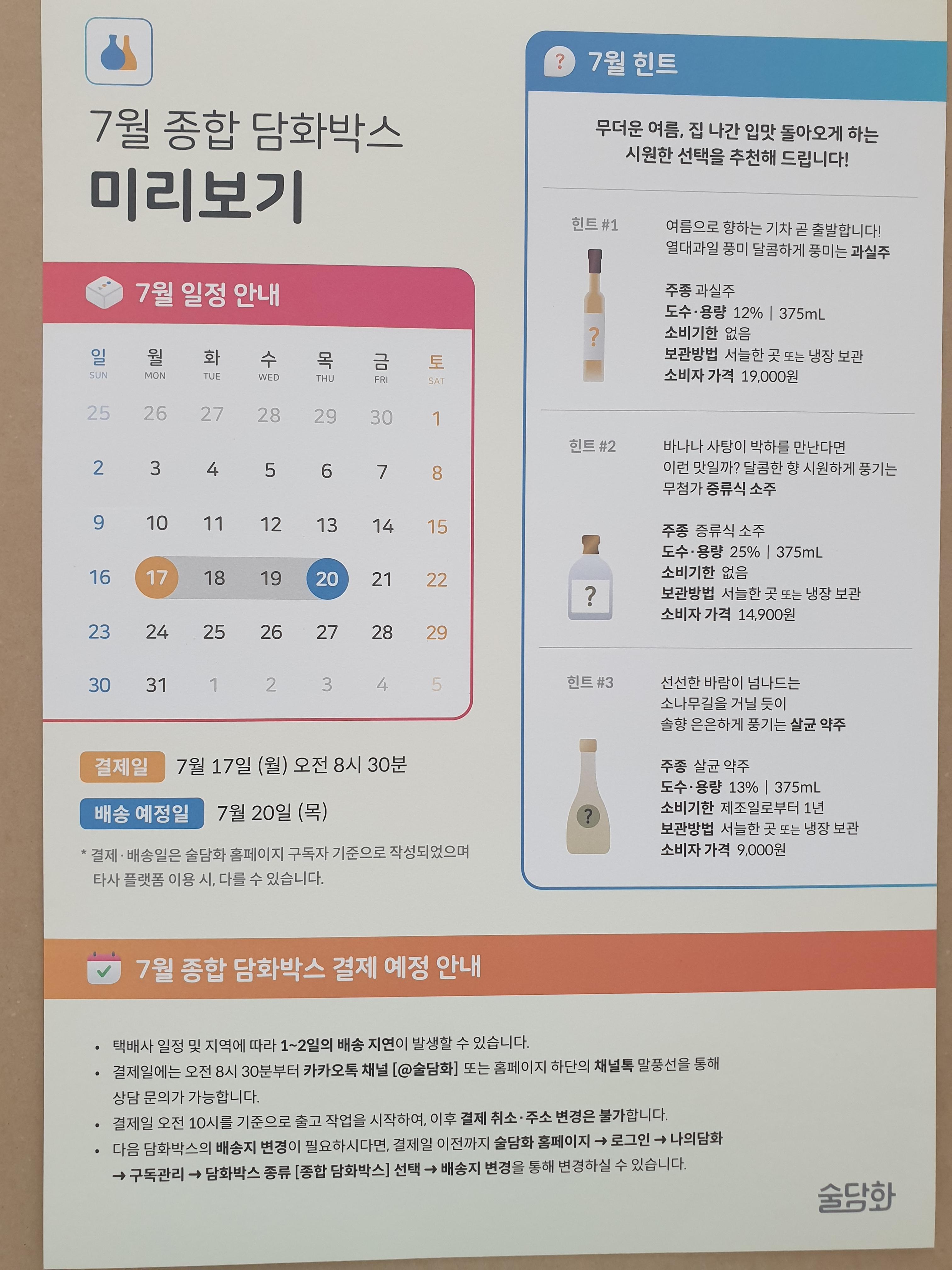 7월에는 어떤 술이 올지 미리 예보를 해주네요