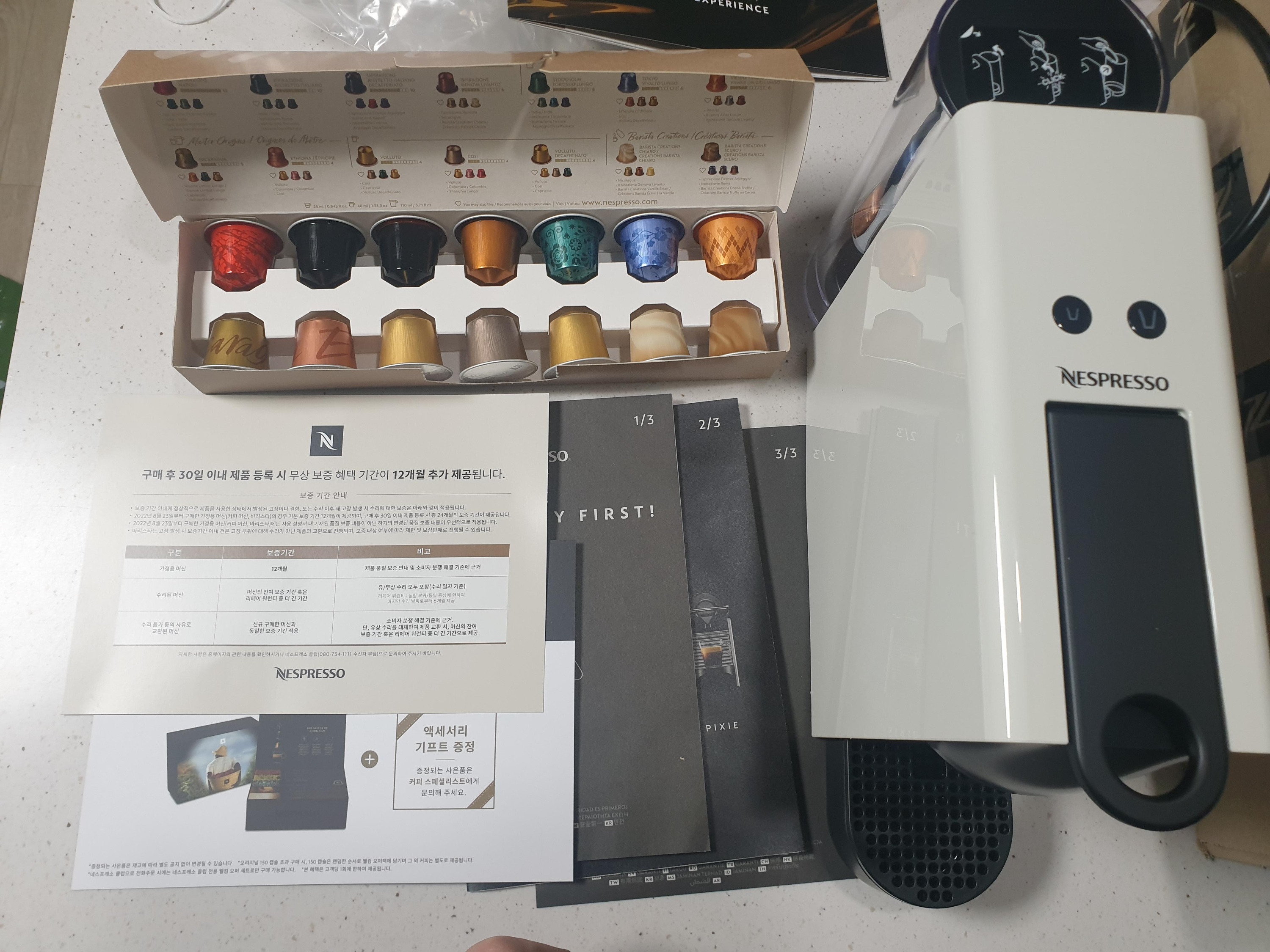 언박싱 후 보이는 네스프레소 커피머신