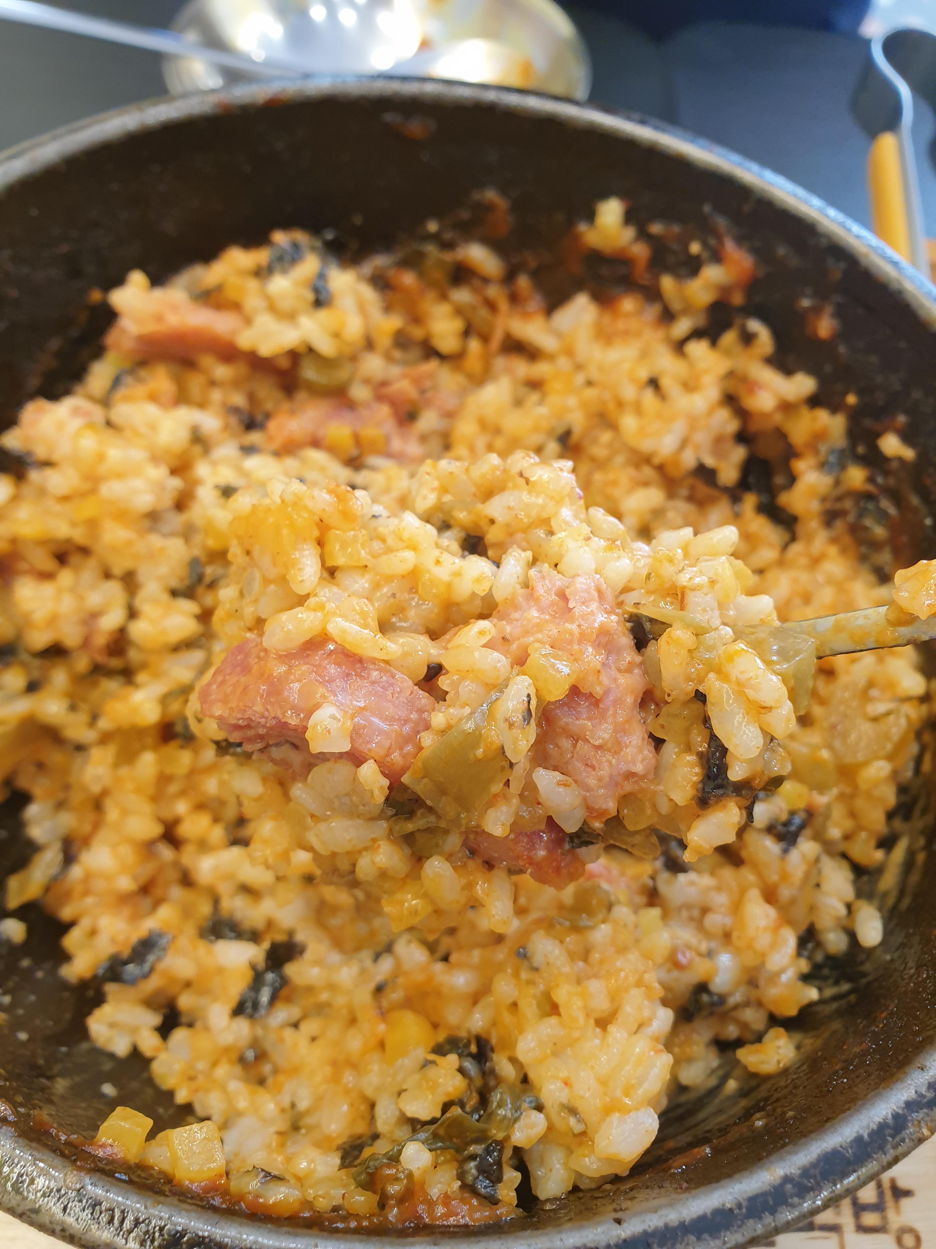 스팸이 짭조름하고 나머지 재료들도 간이 있으니까