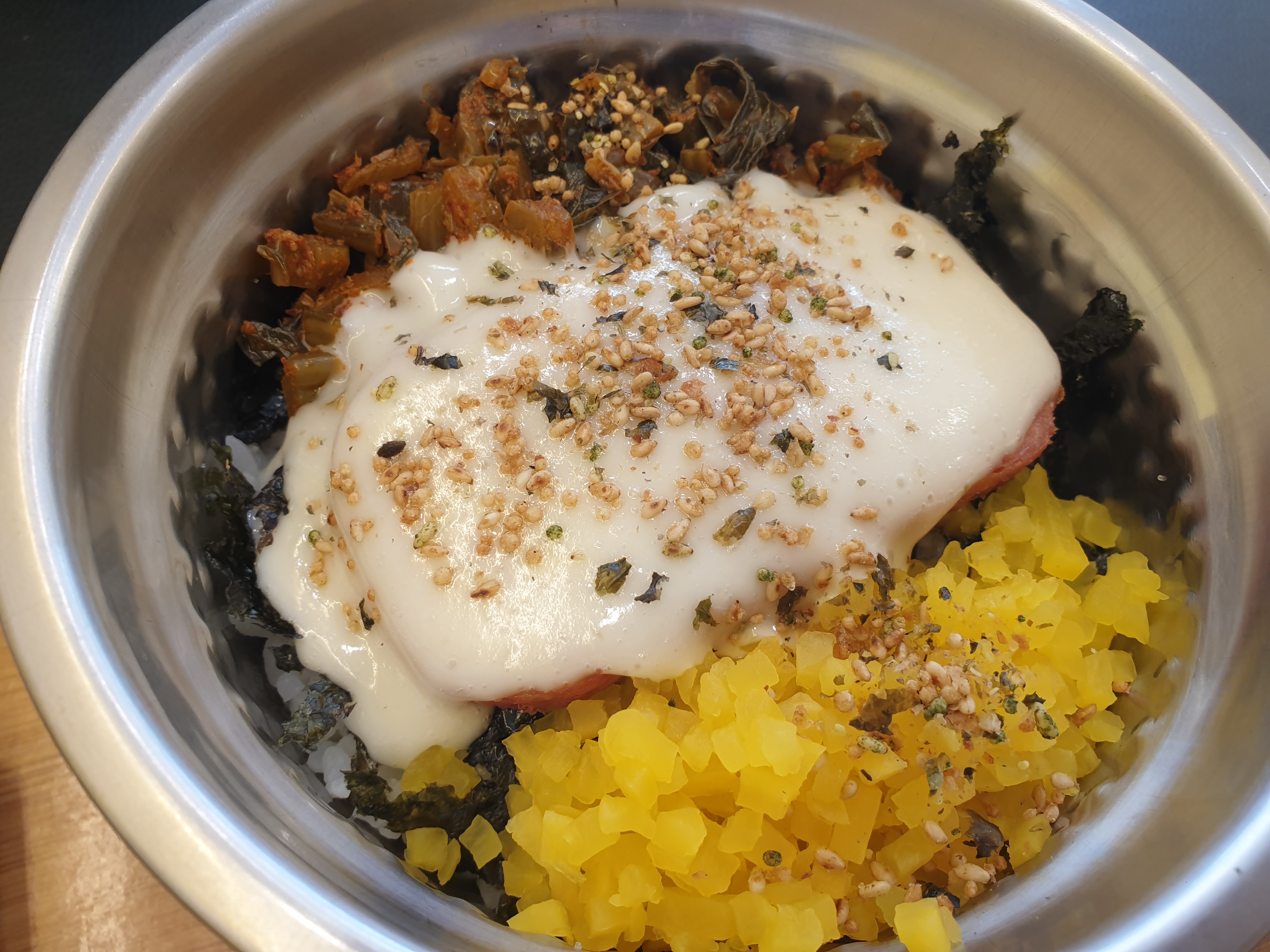 고소한 김가루와 아삭아삭 알단무지, 스팸이 들어가고