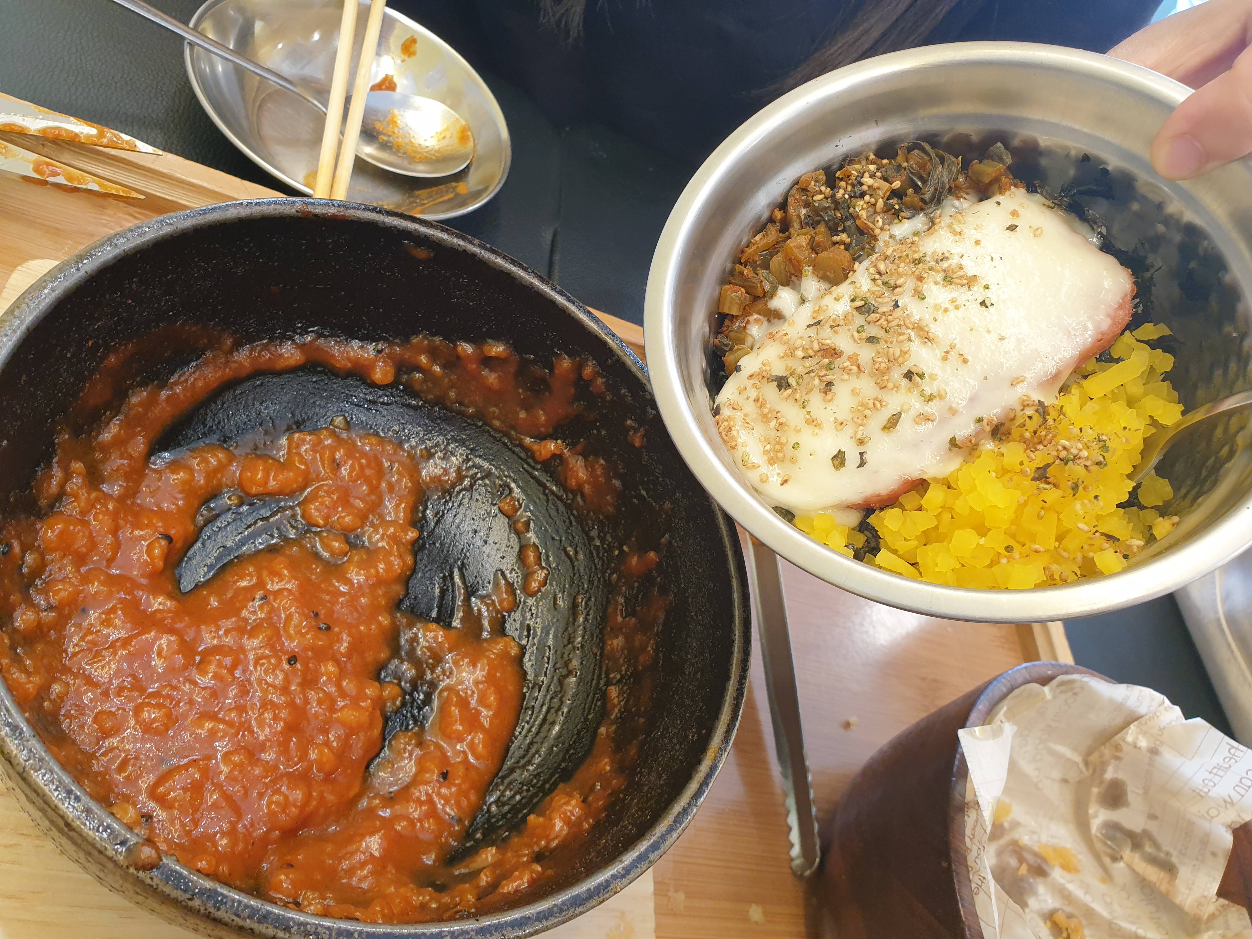 떡볶이를 다 먹구 주물냄비에 남은 소스와 비벼 먹으면