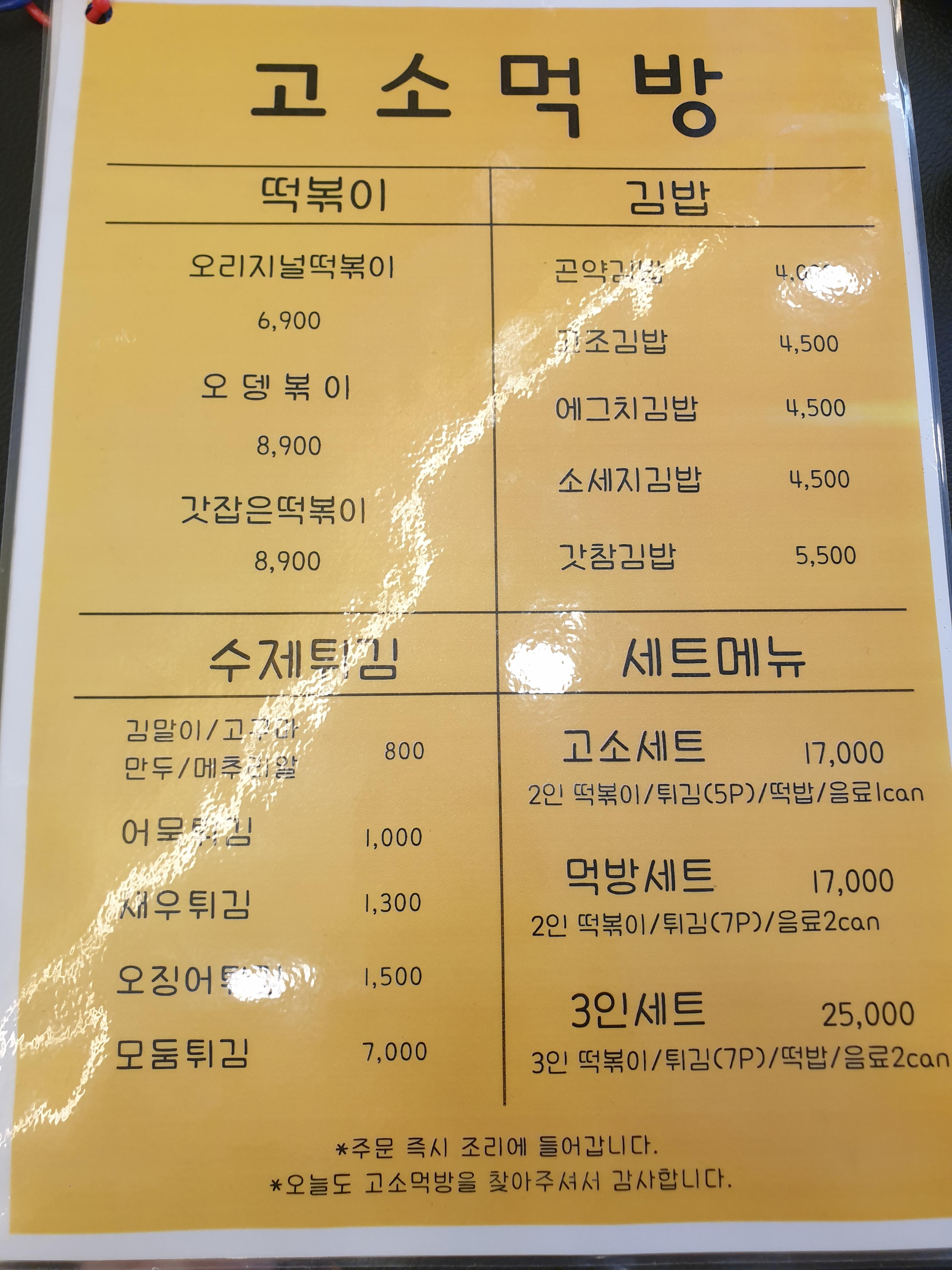 고소먹방 메뉴판