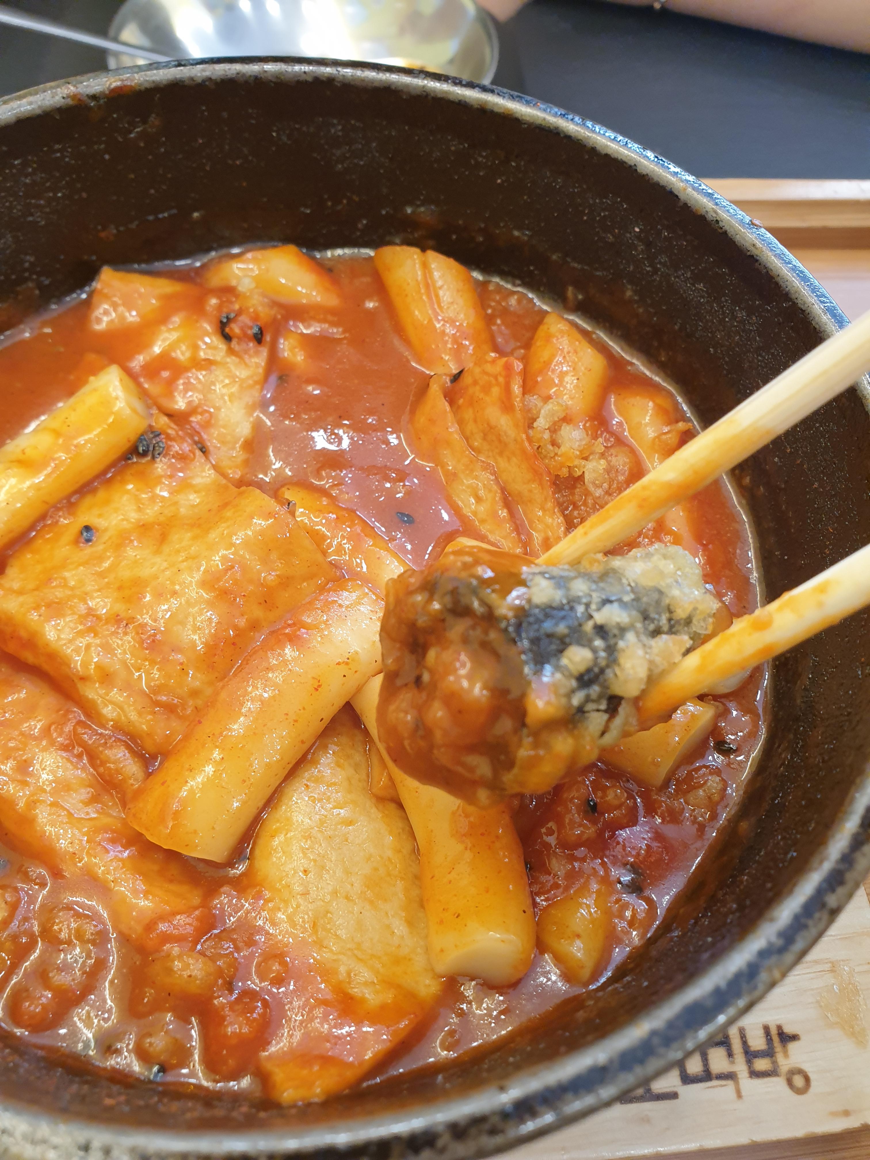 튀김에 떡볶이 소스가 배어들어가니 넘 맛있어요