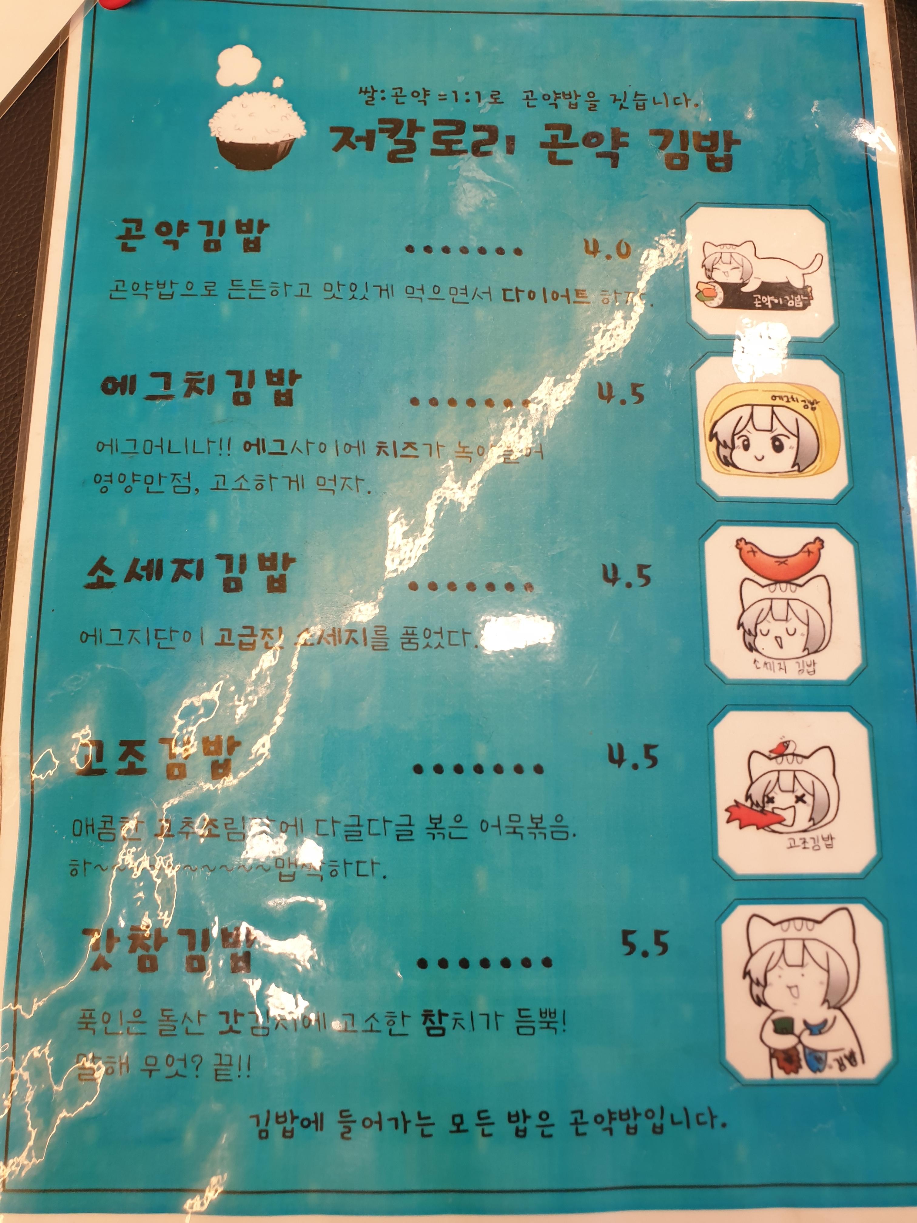 김밥 메뉴 설명 너무 귀엽지 않아요? ㅎㅎㅎ
