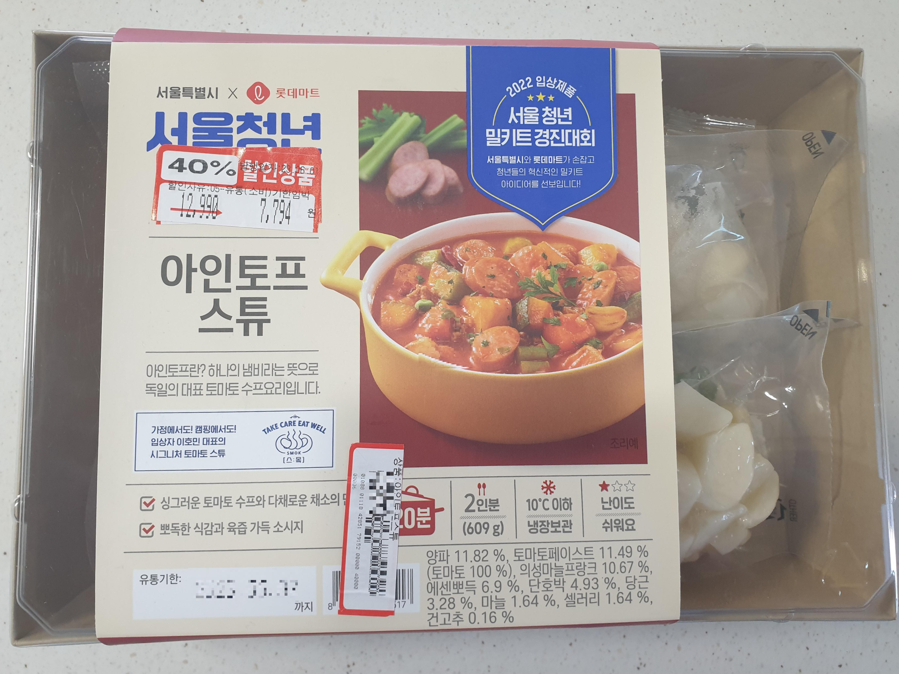 서울 청년 밀키트 아인토프 스튜 후기 끝!