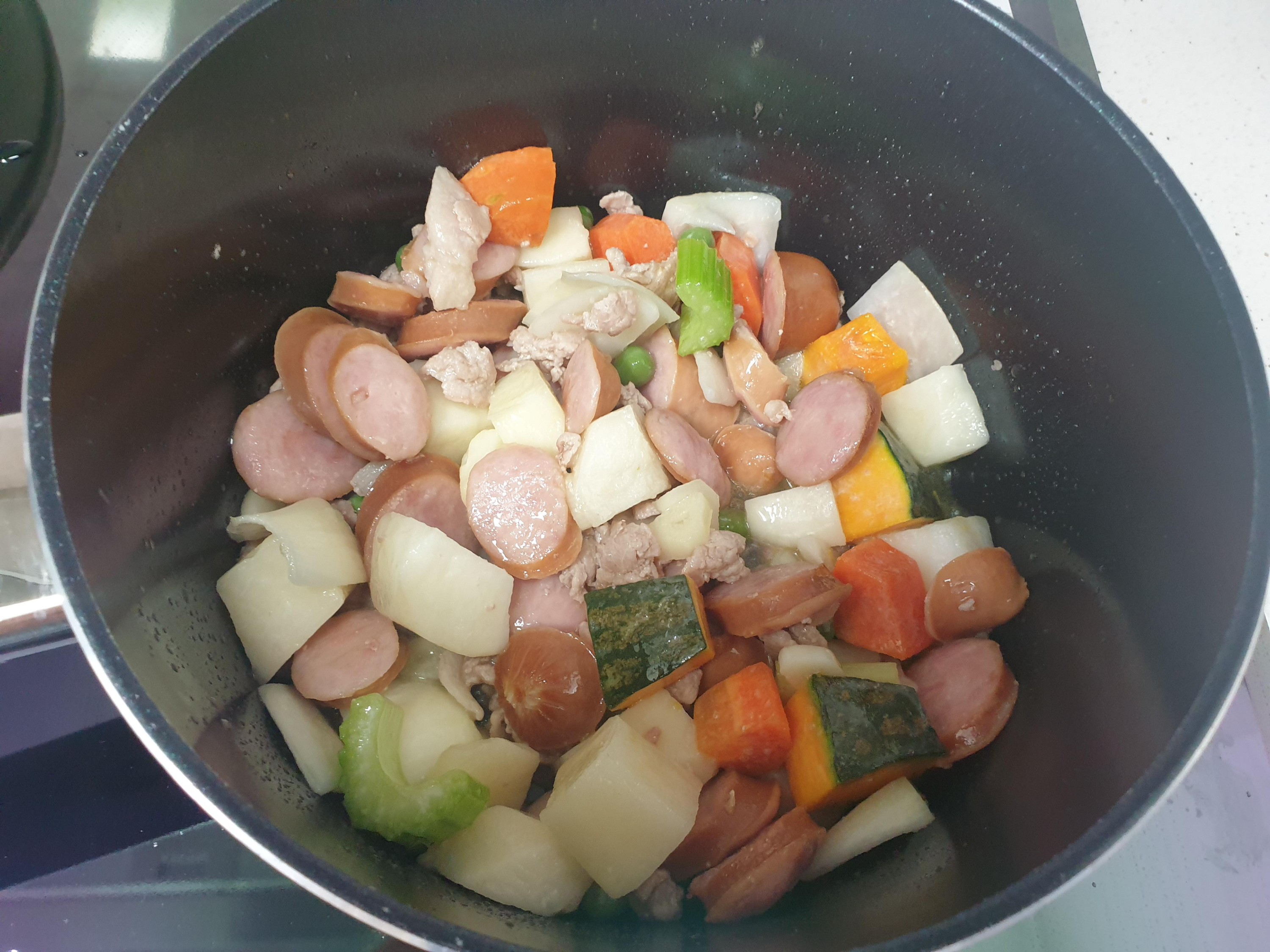 채소를 순서에 맡게 넣고 볶아주면 끝