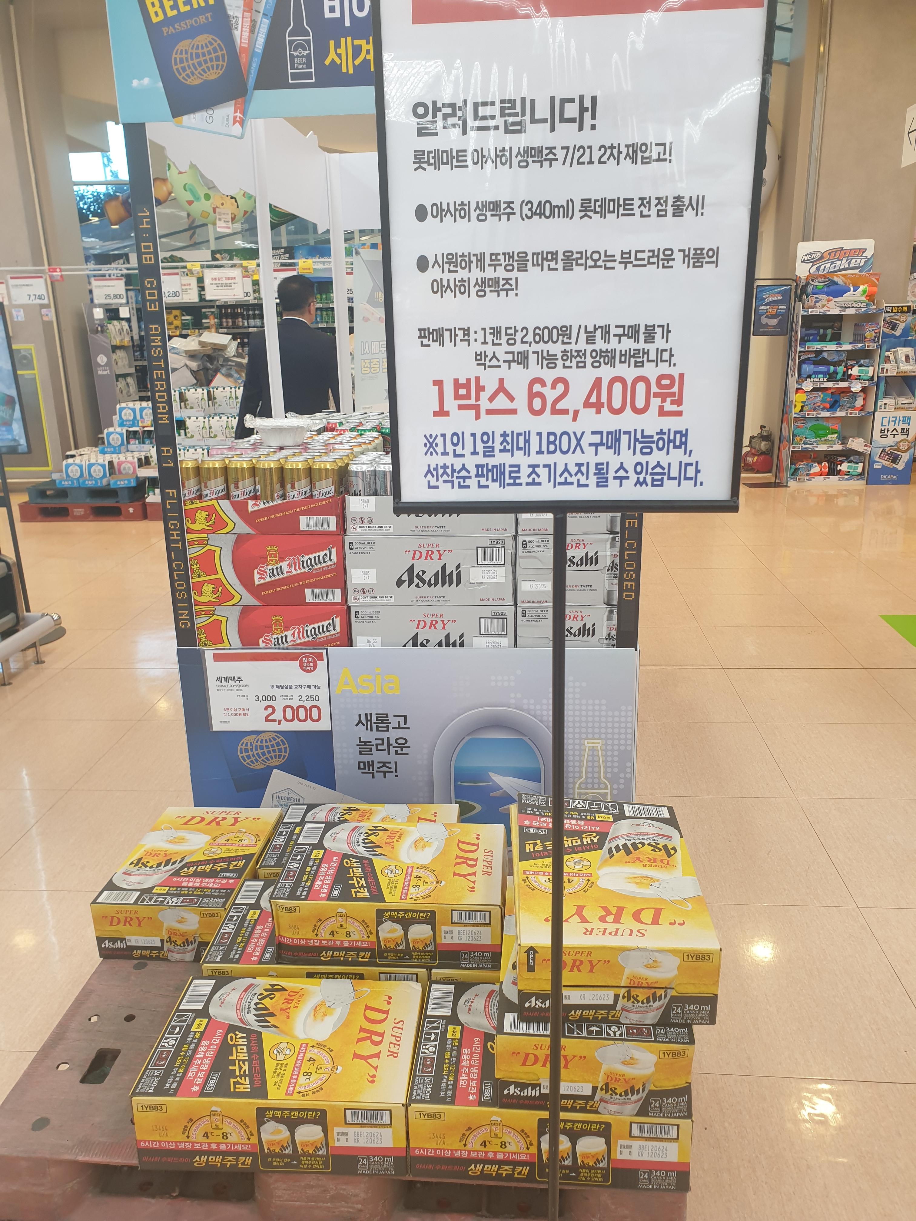 대형 마트구경을 하다 발견한 입간판, Asahi SUPER DRY 생맥주 24캔이요? 바로 구매해야죠