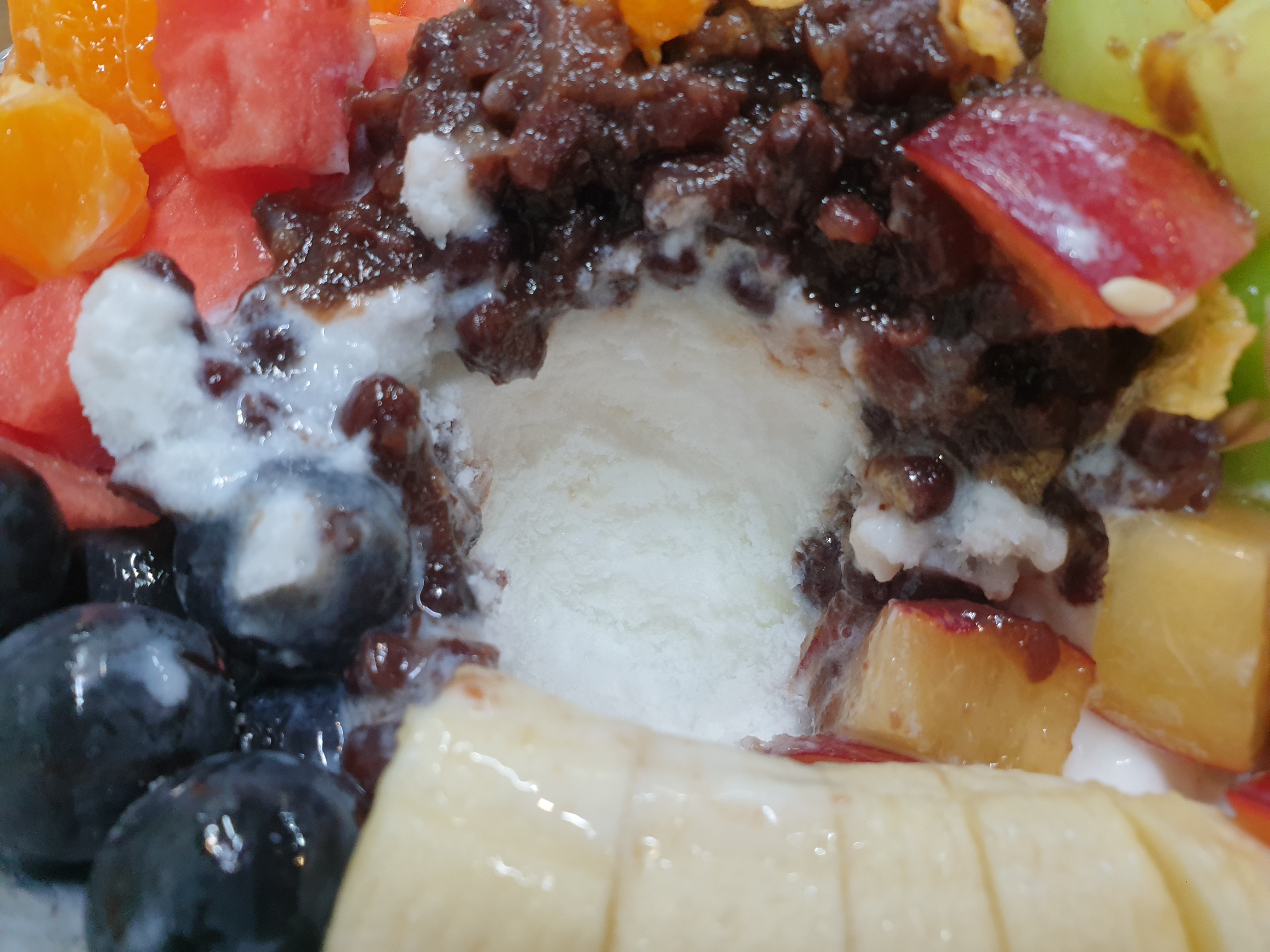 팥이 보이고 빙수가 보이자 전체적으로 다 섞었어요