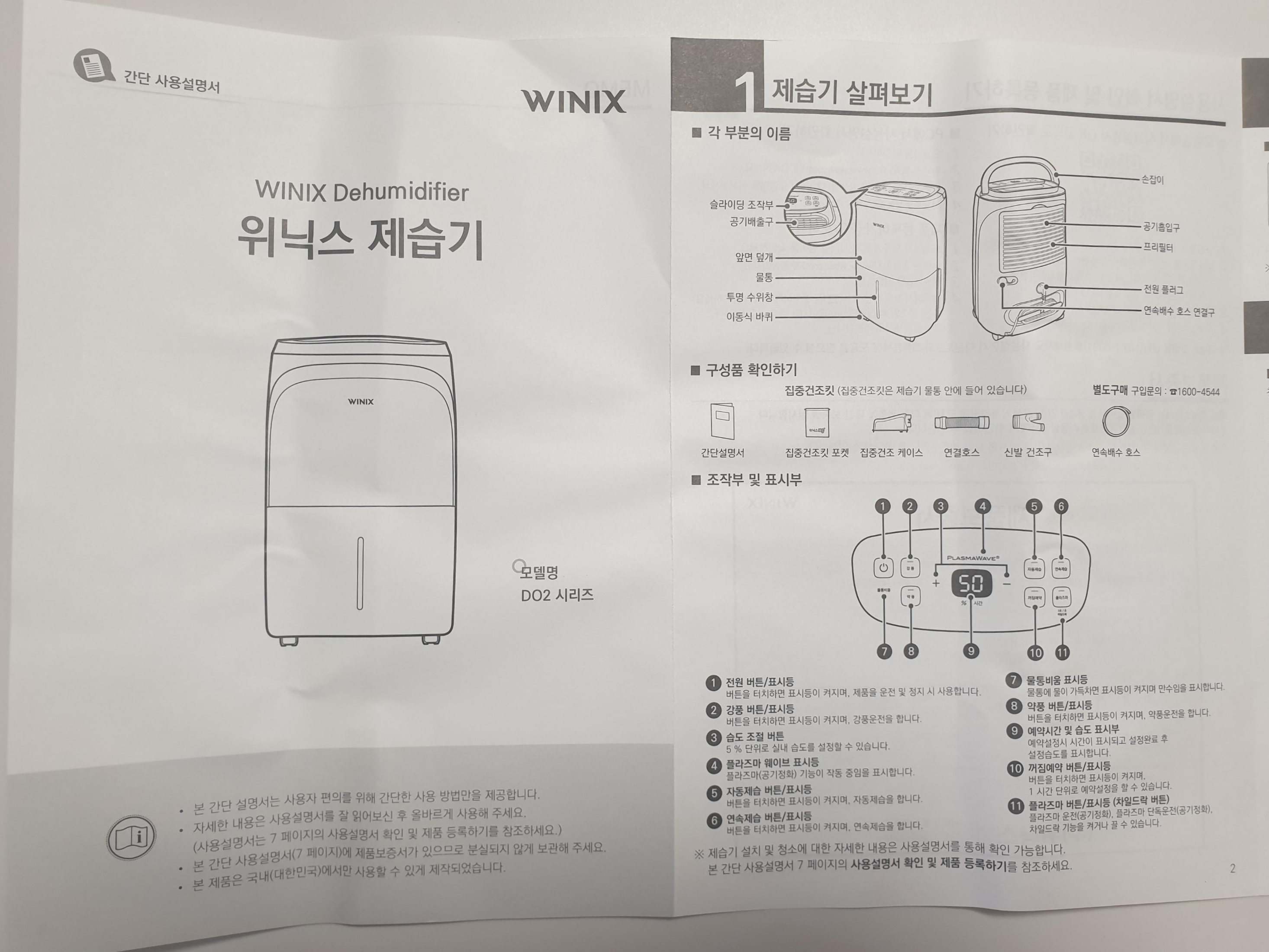 위닉스 뽀송 제습기 설명서를 확인해요