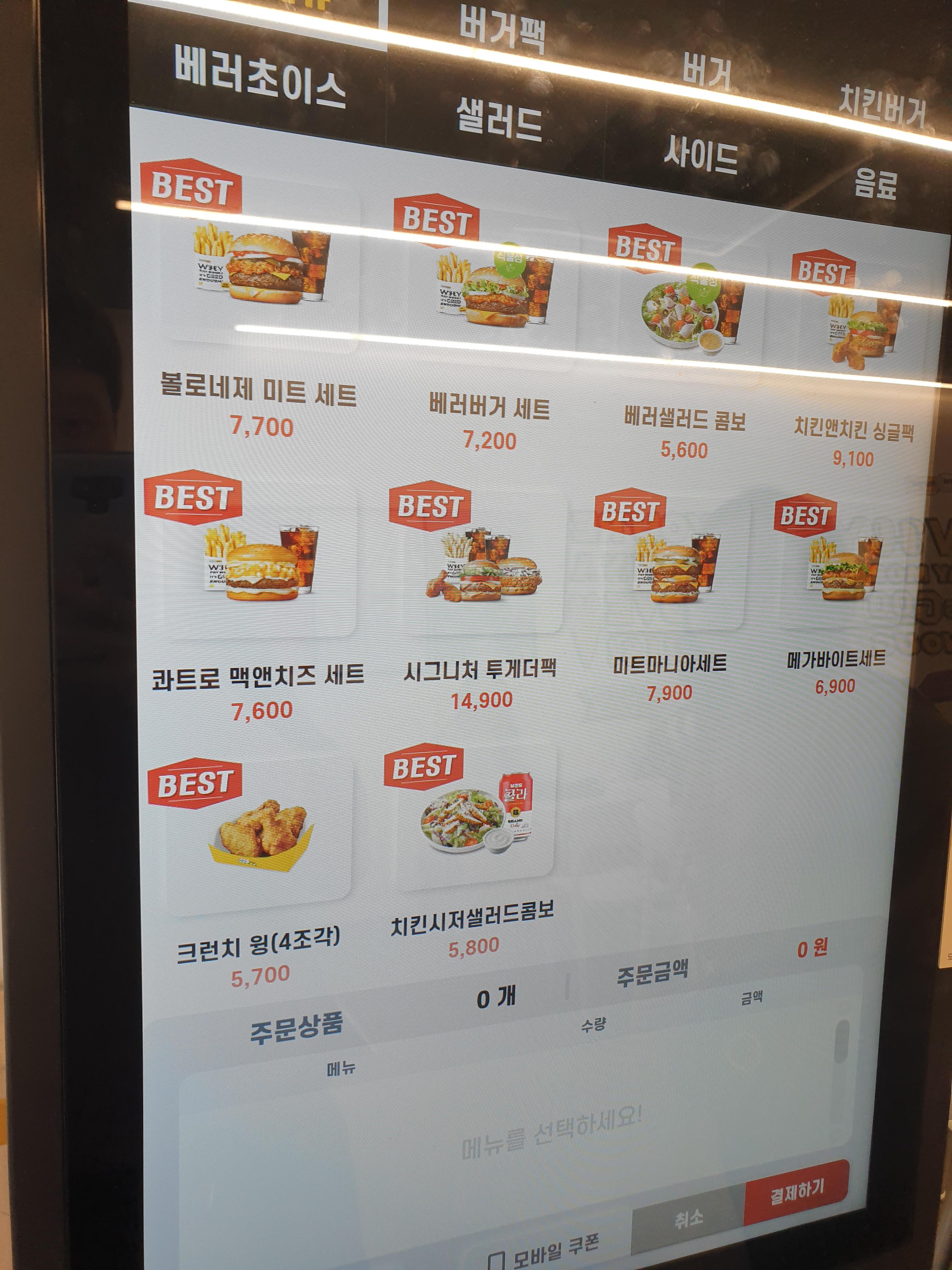 키오스크로 주문하면 되는데 메뉴가 다 BEST라니