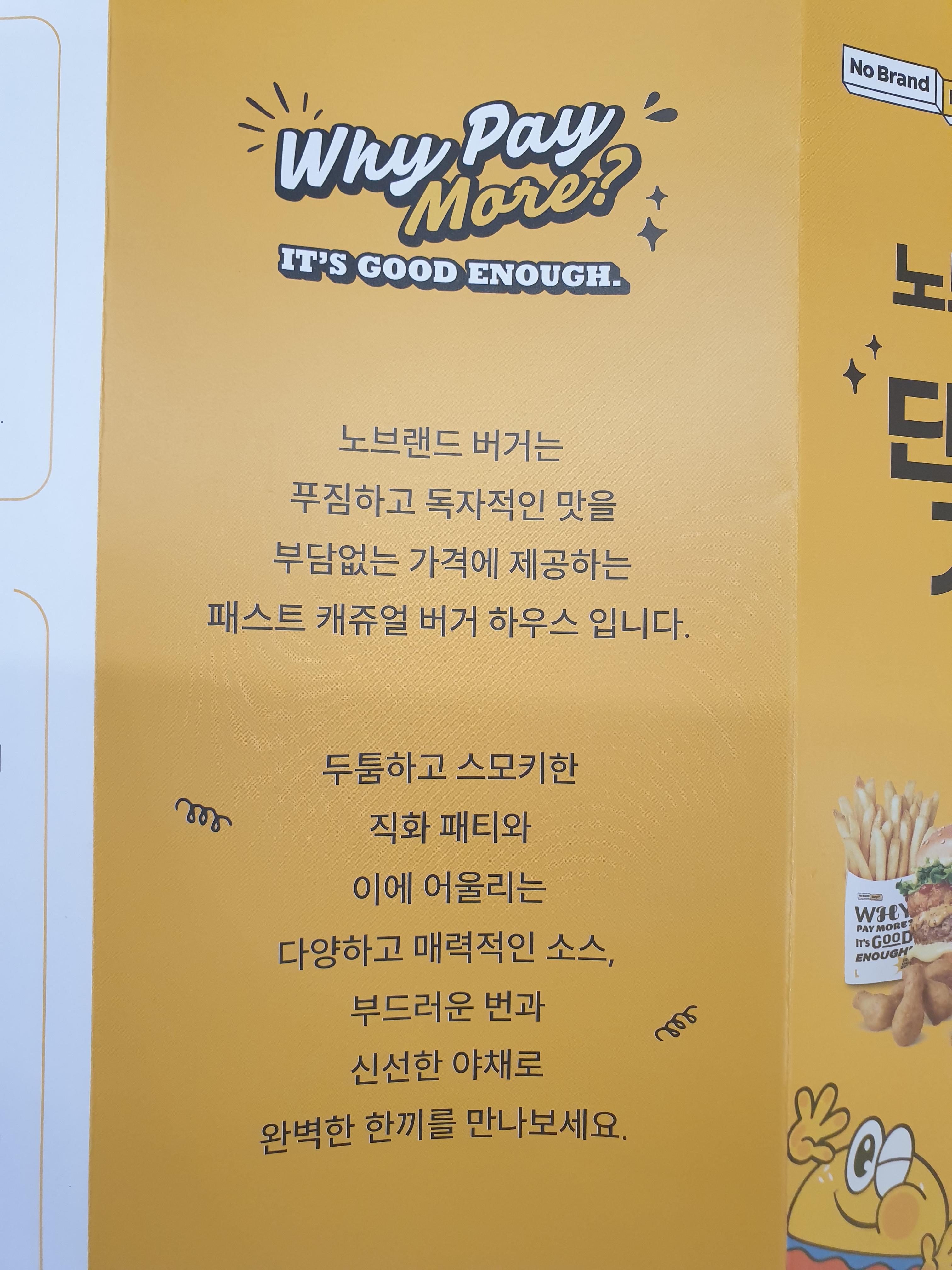 뒷장에는 노브랜드 버거 설명이 적혀있네요